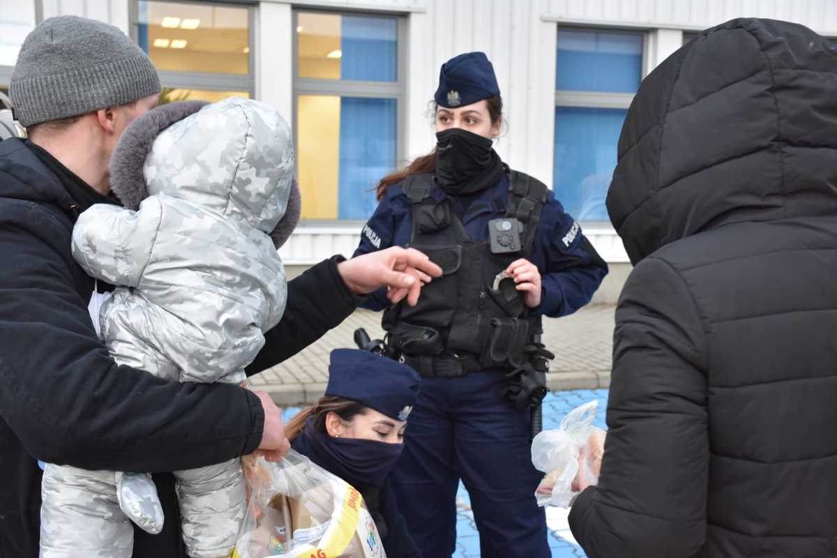 Zadaniem Policji jest zapewnienie bezpieczeństwa i porządku. Ogromny ruch na przejściach wymagał skierowania w ten rejon dodatkowych patroli. Policjanci zabezpieczają przejścia graniczne oraz punkty recepcyjne, służą pomocą i radą. Każdego dnia spotykają się z ogromną tragedią ludzi uciekających przed wojną.