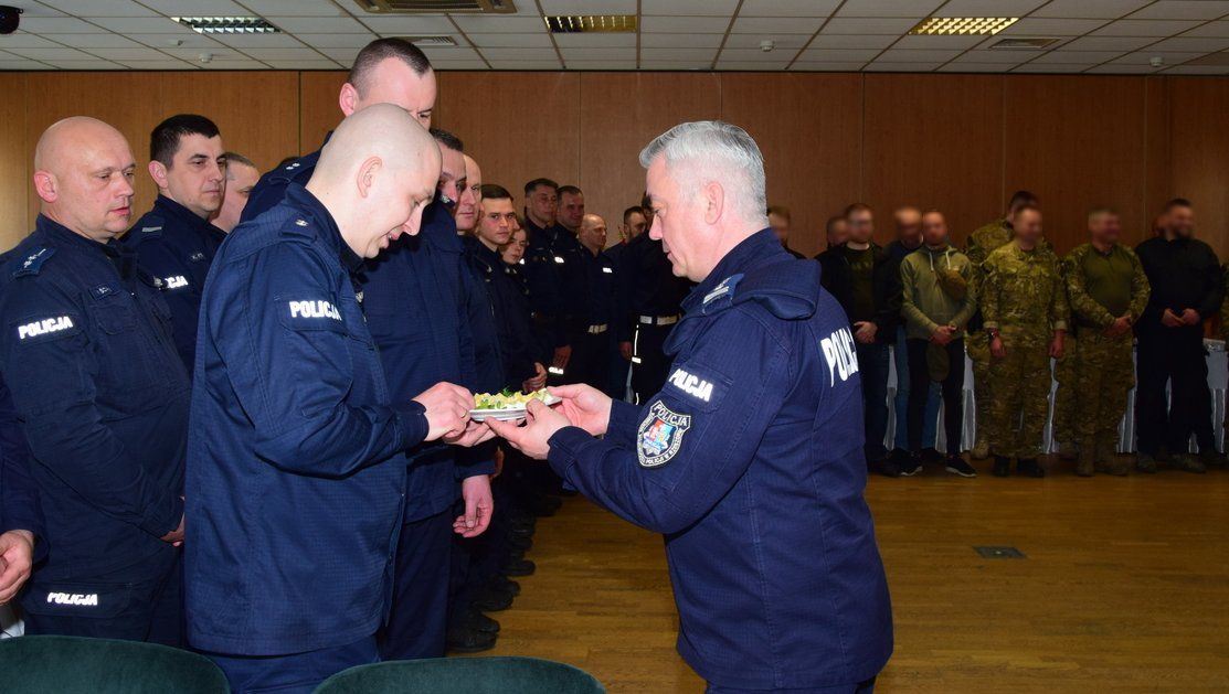 Zastępca Komendanta Głównego Policji przekazał funkcjonariuszom słowa wsparcia, ale też podziękowania za ich trud i poświęcenie. Wyraził wdzięczność za ich oddanie służbie. Szef podkarpackich policjantów złożył wszystkim życzenia pomyślności, zdrowia, spokojnej służby i bezpiecznego powrotu do domu.