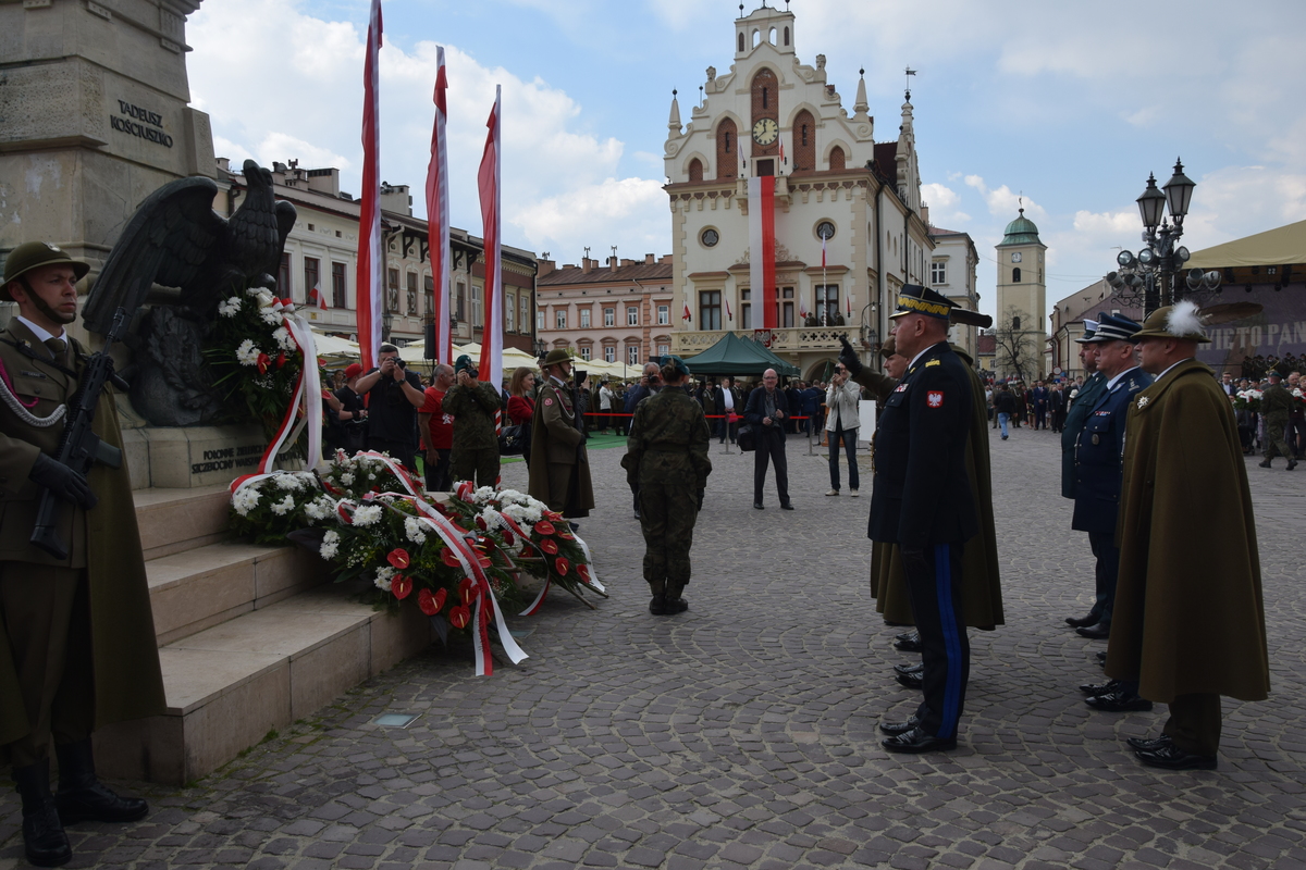 Na rzeszowskim Rynku, pod pomnikiem gen. Tadeusza Kościuszki przedstawiciele władz administracyjnych i samorządowych oraz służb mundurowych złożyli wieńce i kwiaty. W ten sposób uczczono obchody 231. rocznicy uchwalenia Konstytucji 3 Maja.