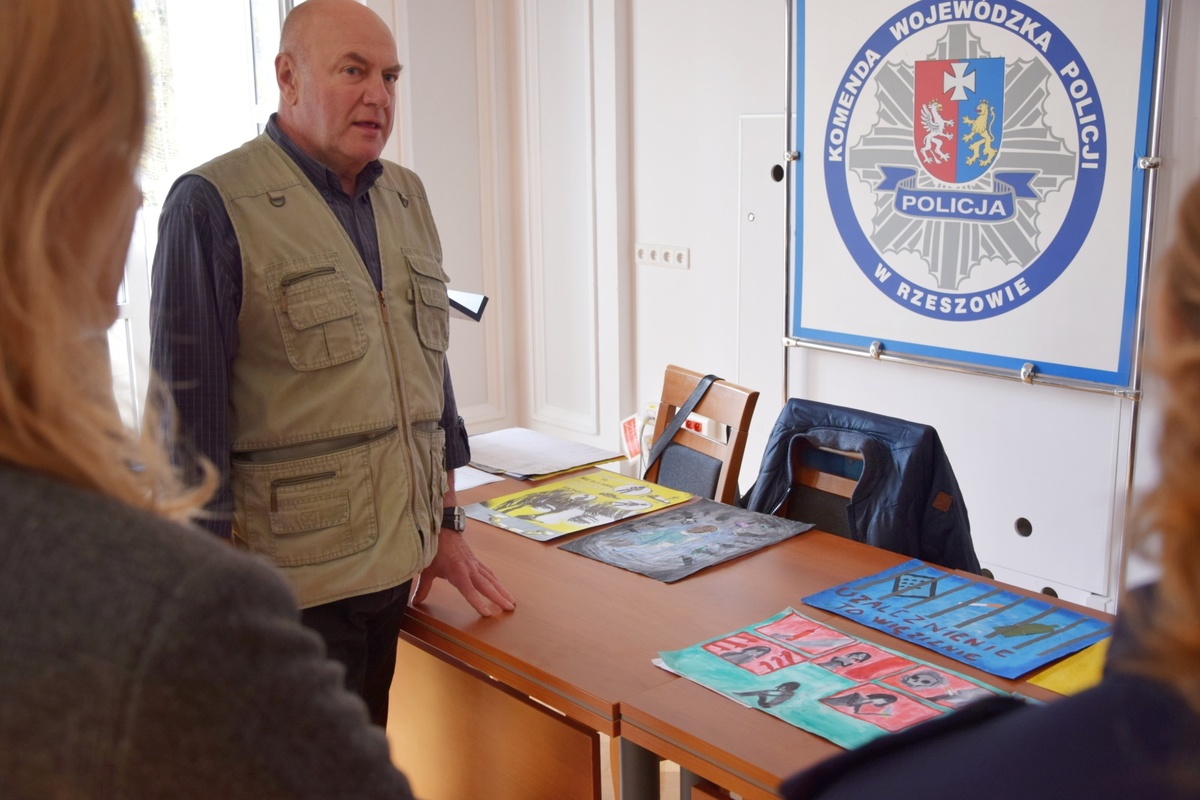 Jury konkursowe w składzie: Jan Krawiec z Zespółu Szkół Plastycznych w Rzeszowie, Łukasz Kosiba i Alina Kręt z Regionalnego Ośrodka Polityki Społecznej w Rzeszowie oraz podinsp. Alina Pieniążek, nadkom. Elżbieta Siupik i st. asp. Jerzy Ossoliński z Wydziału Prewencji Komendy Wojewódzkiej Policji w Rzeszowie, miało trudny wybór. Na konkurs wpłynęło wiele znakomitych prac.