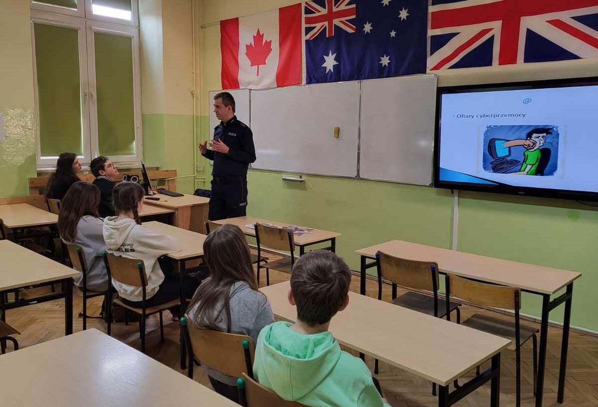 W piątek, st. asp. Jerzy Ossoliński z Wydział Prewencji Komendy Wojewódzkiej Policji w Rzeszowie odwiedził uczniów Szkoły Podstawowej nr 3 w Rzeszowie. Podczas spotkania uczestnicy mieli okazję dowiedzieć się, jak bezpiecznie korzystać z internetu, na czym polega zjawisko cyberprzemocy, a także w jaki sposób unikać tego typu zagrożeń. Przedstawiony został problem szkodliwych treści, które mogą wywoływać negatywne emocje u dzieci lub promują niebezpieczne zachowania. Prowadzący przedstawił również konsekwencje prawne czynów karalnych oraz przejawów demoralizacji, do których dochodzi w sieci. Słuchacze uzyskali wskazówki, gdzie mogą zwrócić się o pomoc w sytuacji, kiedy staną się ofiarą cyberprzemocy. W spotkaniu wzięli udział także przedstawiciele lokalnych mediów.