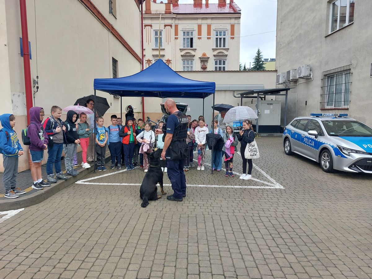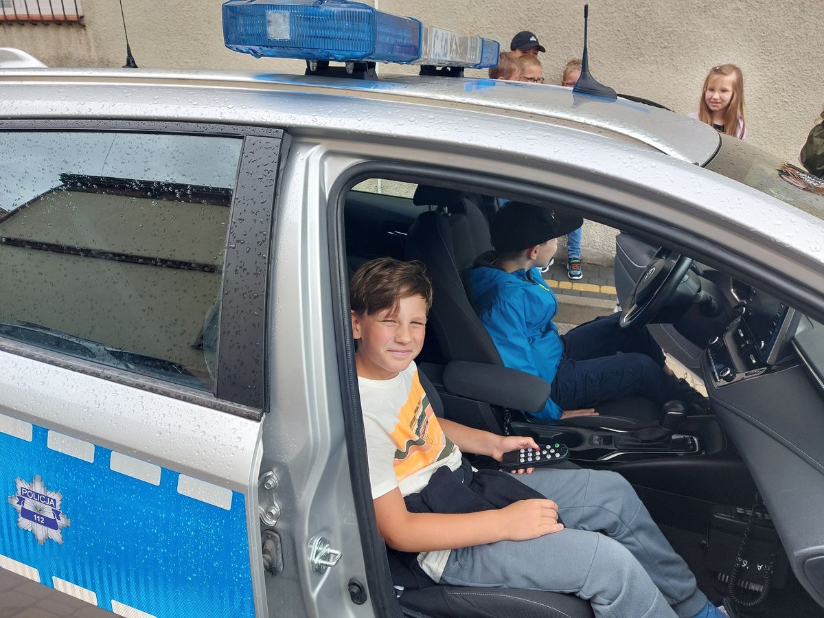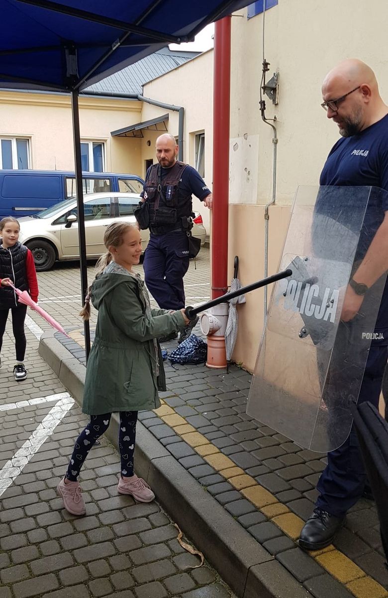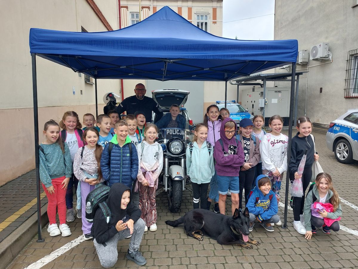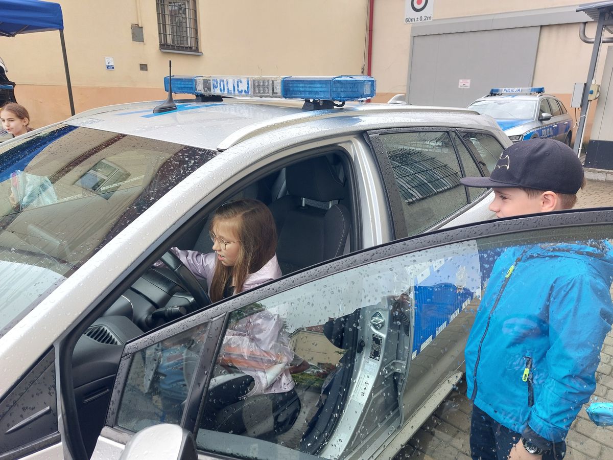 Nasi mali goście mieli możliwość zobaczenia kamizelki ochronnej, kasku i policyjnej tarczy. Kolejną niespodzianką było spotkanie z technikiem kryminalistyki. Funkcjonariusz zaprezentował dzieciom sposoby zabezpieczania śladów na miejscu zdarzenia. Najatrakcyjniejsza dla maluchów, była możliwość skanowania odcisków linii papilarnych dłoni. Jeszcze więcej radości i uśmiechów na buziach wywołał policyjny pies patrolowo-tropiący Alfa. O jego pracy i umiejętnościach opowiadał uczniom policjant przewodnik psa. Zainteresowani motoryzacją mogli wsiąść do policyjnego radiowozu lub za kierownicę służbowego motocykla harleya.