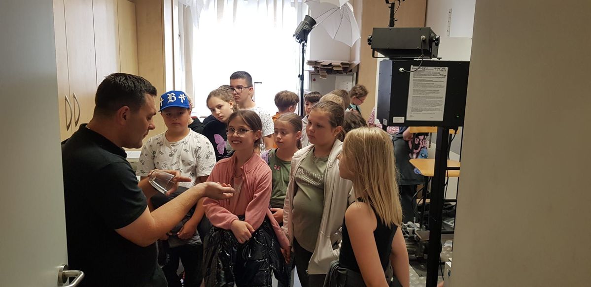 Uczniów przywitali, a następnie oprowadzali po komendzie, policjanci z referatu ds. profilaktyki społecznej i nieletnich oraz wydziału prewencji. Podczas wizyty opowiadali dzieciom o pracy policyjnej m.in. o obowiązkach dyżurnego komendy. W pomieszczeniu, gdzie znajduje się monitoring, zobaczyli kamery ,,obserwujące” ulice naszego miasta.