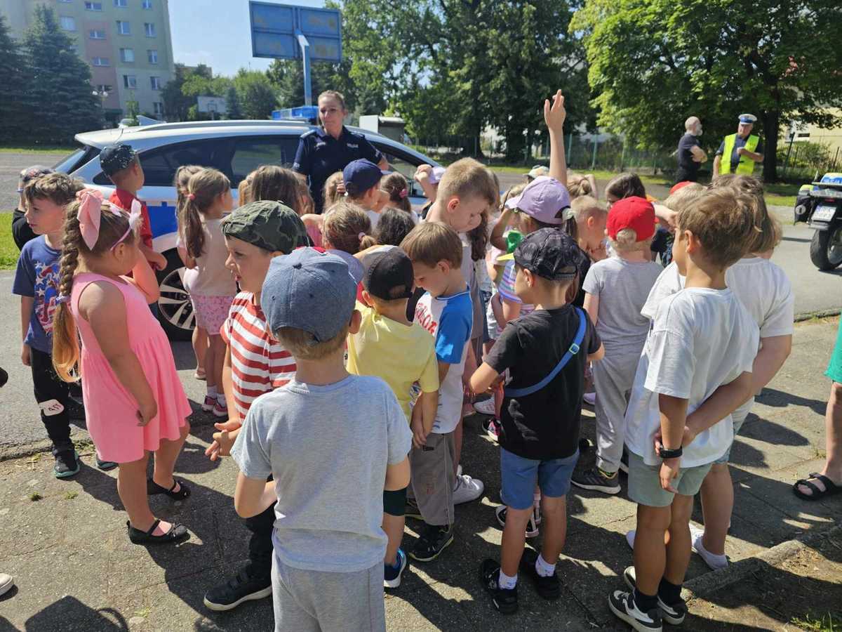Podczas spotkania funkcjonariusze mówili o zasadach bezpiecznego podróżowania oraz prezentowali policyjne radiowozy. Wspólnie z dziećmi zastanawiali się nad tym jak uniknąć zagrożeń podczas zbliżających się wakacji. W spotkaniu wzięli udział, asp. Joanna Szaraniec oraz podinsp. Robert Kras.