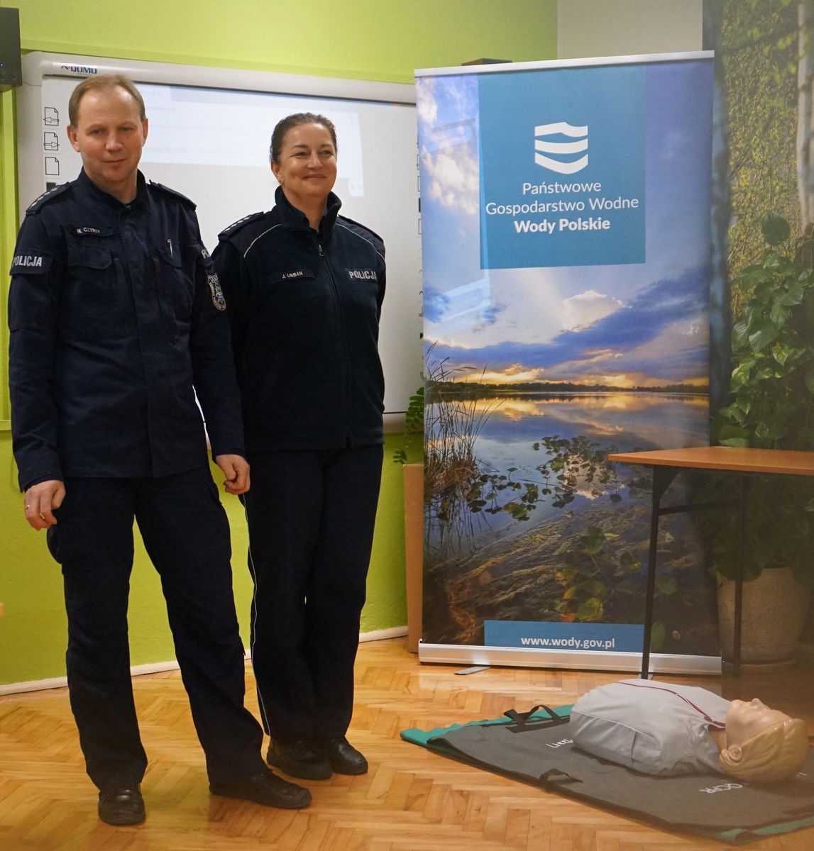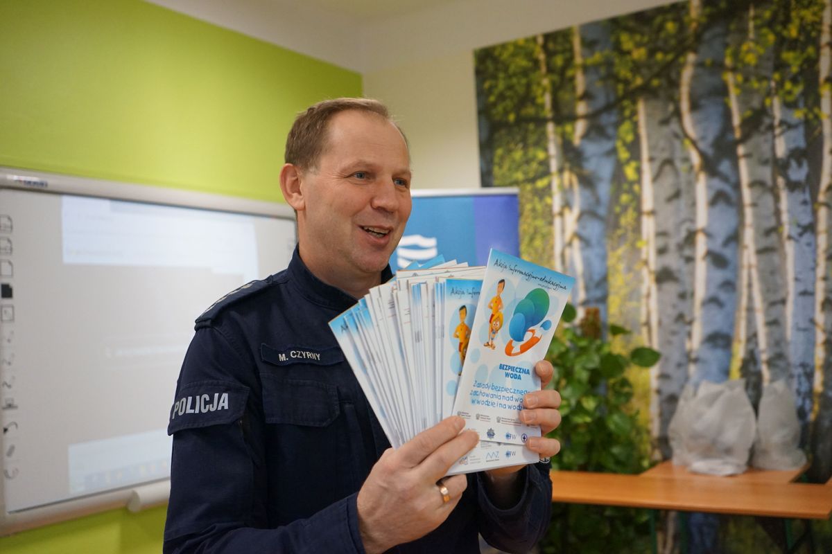 Policjanci przypominali jak udzielać pierwszej pomocy, co zrobić, gdy załamie się pod nami lód, a także jak zadbać o to, by czas spędzony nad wodą był przyjemny i bezpieczny.
