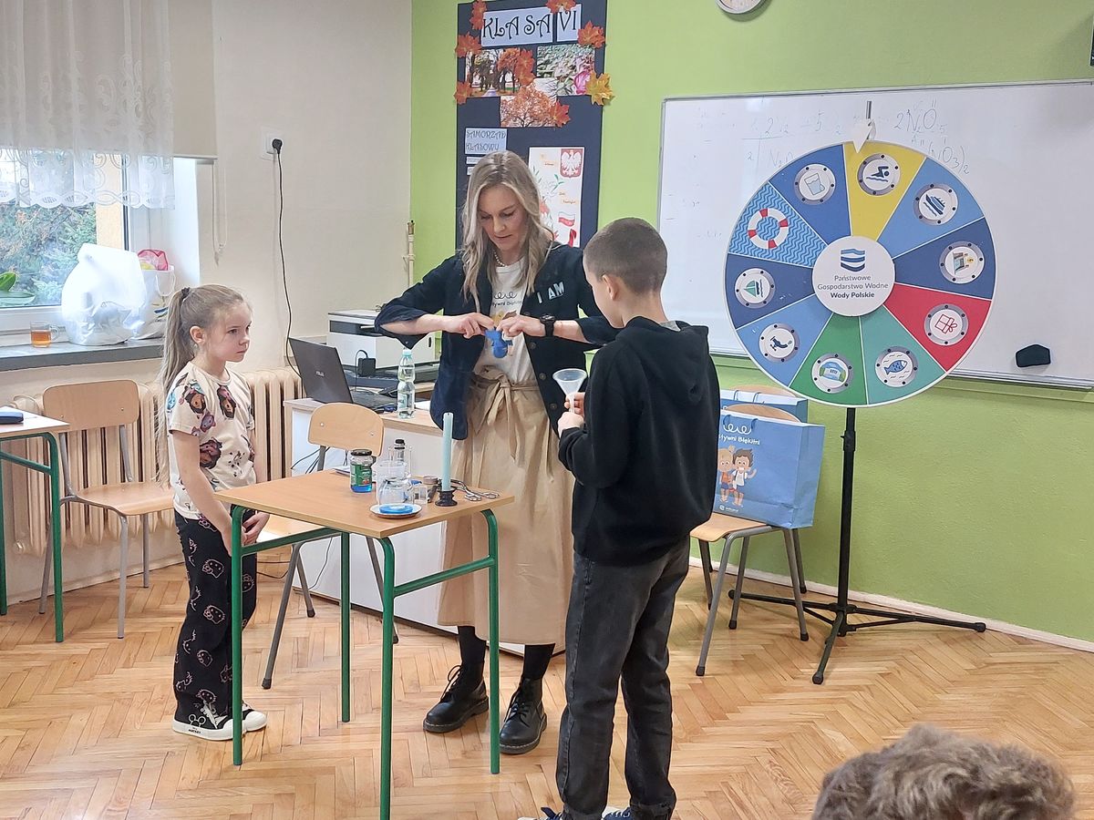 Przedstawiciele Państwowego Gospodarstwa Wodnego Wody Polskie Regionalnego Zarządu Gospodarki Wodnej w Rzeszowie przeprowadzili krótką pogadankę na temat wody i jej właściwości.