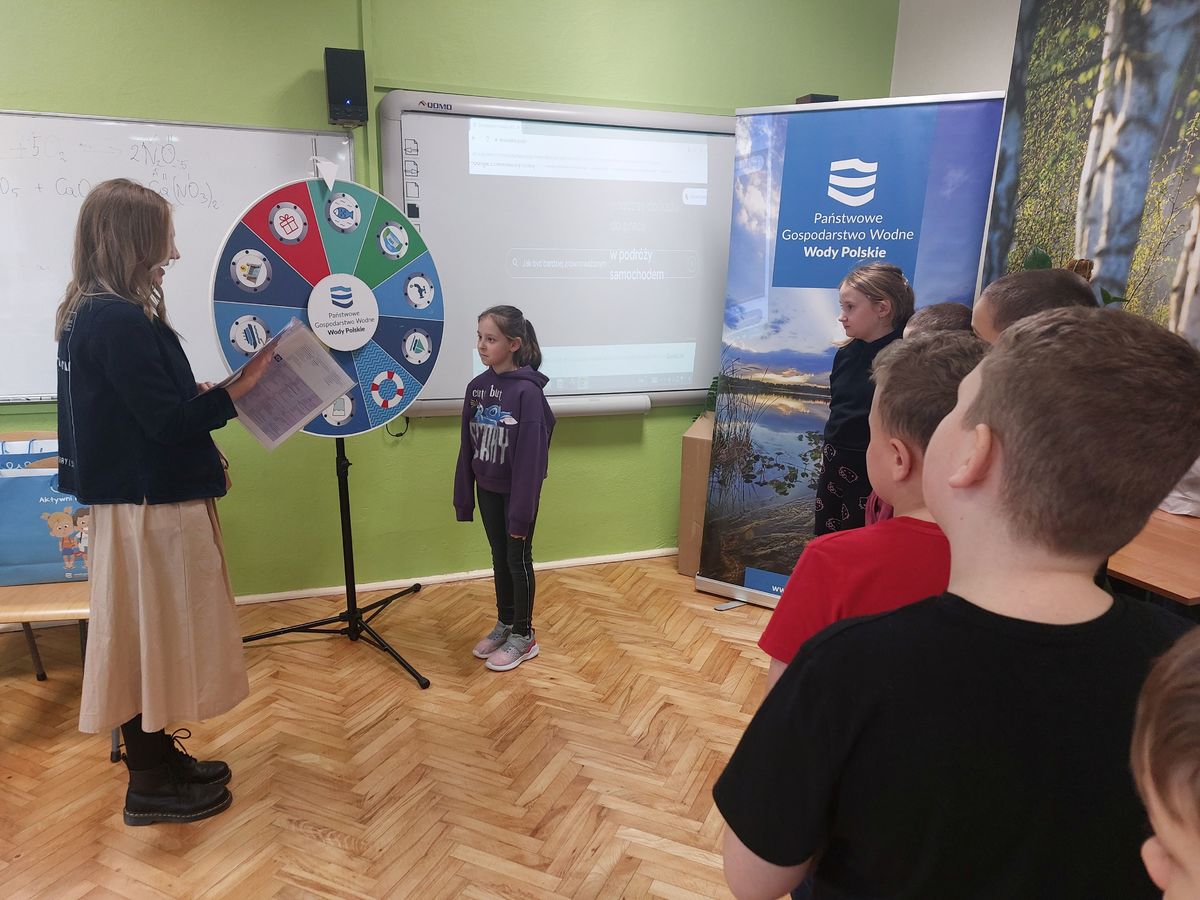 Na koniec spotkania uczniowie zagrali quiz - Wodne Koło Fortuny. Uczestnicy zyskali wiedzę m.in. na temat racjonalnego gospodarowania zasobami wodnymi, powodzi i suszy oraz ochrony środowiska.