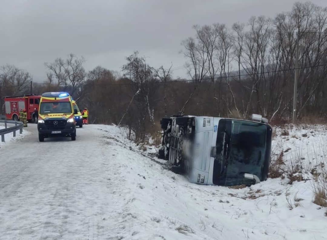 Dziewiętnaście osób trafiło na badania do szpitala po wypadku, do jakiego doszło wczoraj, w Ustrzykach Górnych. Kierowca, na śliskiej nawierzchni, najprawdopodobniej stracił panowanie nad pojazdem, w wyniku czego autokar przewrócił się na bok. Szczegółowe okoliczności tego zdarzenia wyjaśni prowadzone postępowanie.