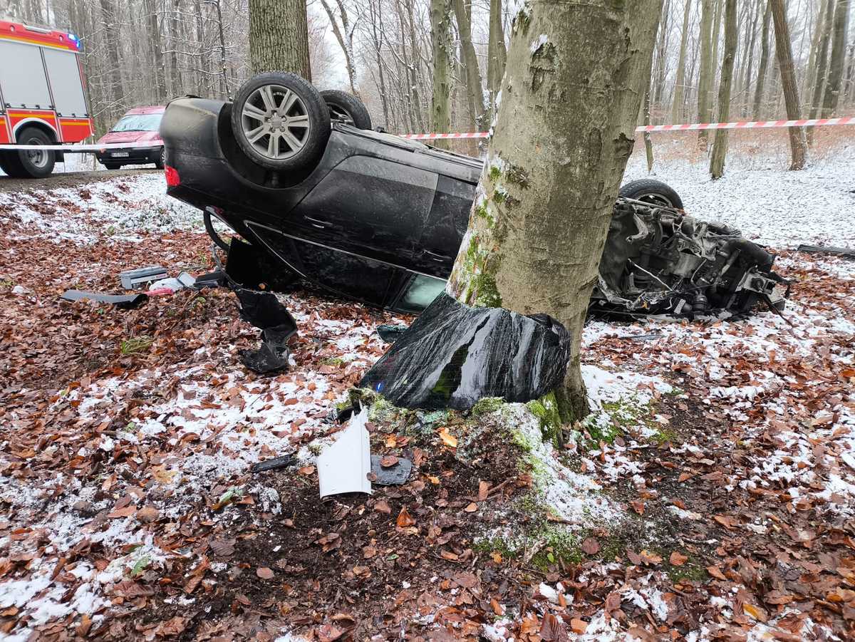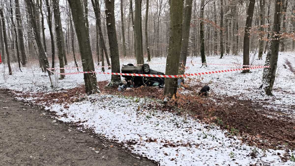 Mundurowi ustalili, że kierujący osobówką, najprawdopodobniej nie dostosował prędkości do warunków ruchu, stracił panowanie nad pojazdem, wjechał do rowu, a następnie uderzył w drzewa i dachował. Audi podróżowało łącznie trzech mężczyzn. Dwóch z nich oddaliło się z miejsca zdarzenia.