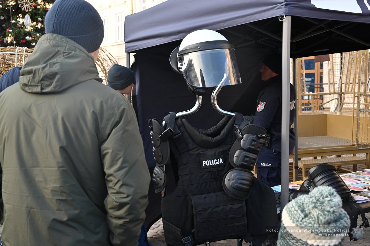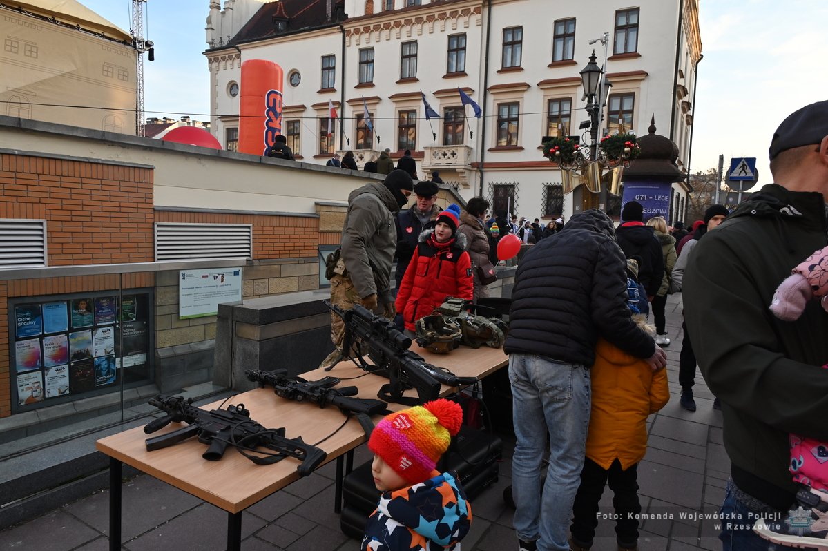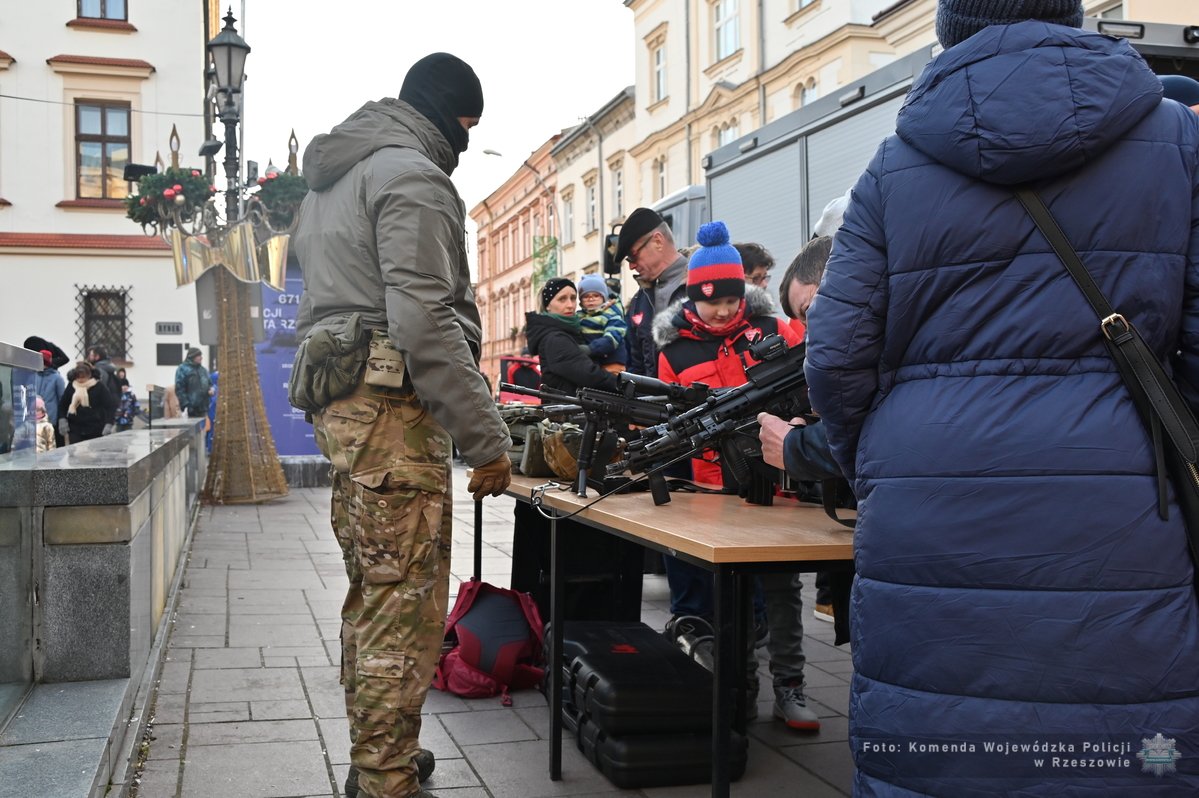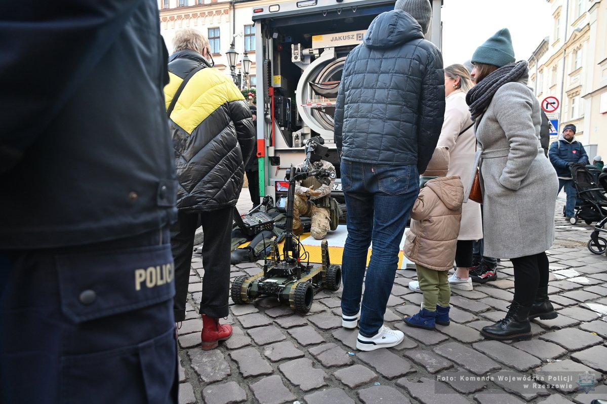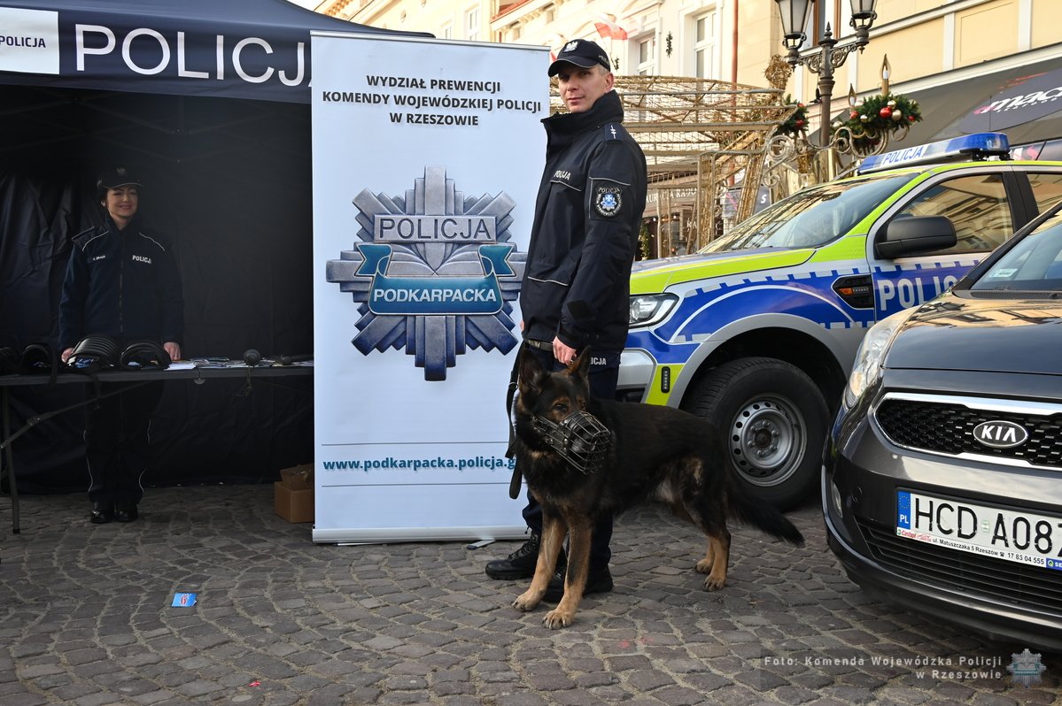 Na rzeszowskim Rynku, policjanci przygotowali stoiska promocyjne. Funkcjonariusze Wydziału Prewencji Komendy Wojewódzkiej Policji w Rzeszowie wspólnie policjantami z komendy miejskiej w Rzeszowie, oprócz materiałów profilaktycznych i rozmów o bezpieczeństwie, rozdawali także elementy odblaskowe. Policyjni kontrterroryści oraz funkcjonariusze oddziału prewencji zaprezentowali sprzęt, który wykorzystują w codziennej służbie. Dużym zainteresowaniem cieszył się pokaz tresury policyjnego psa.