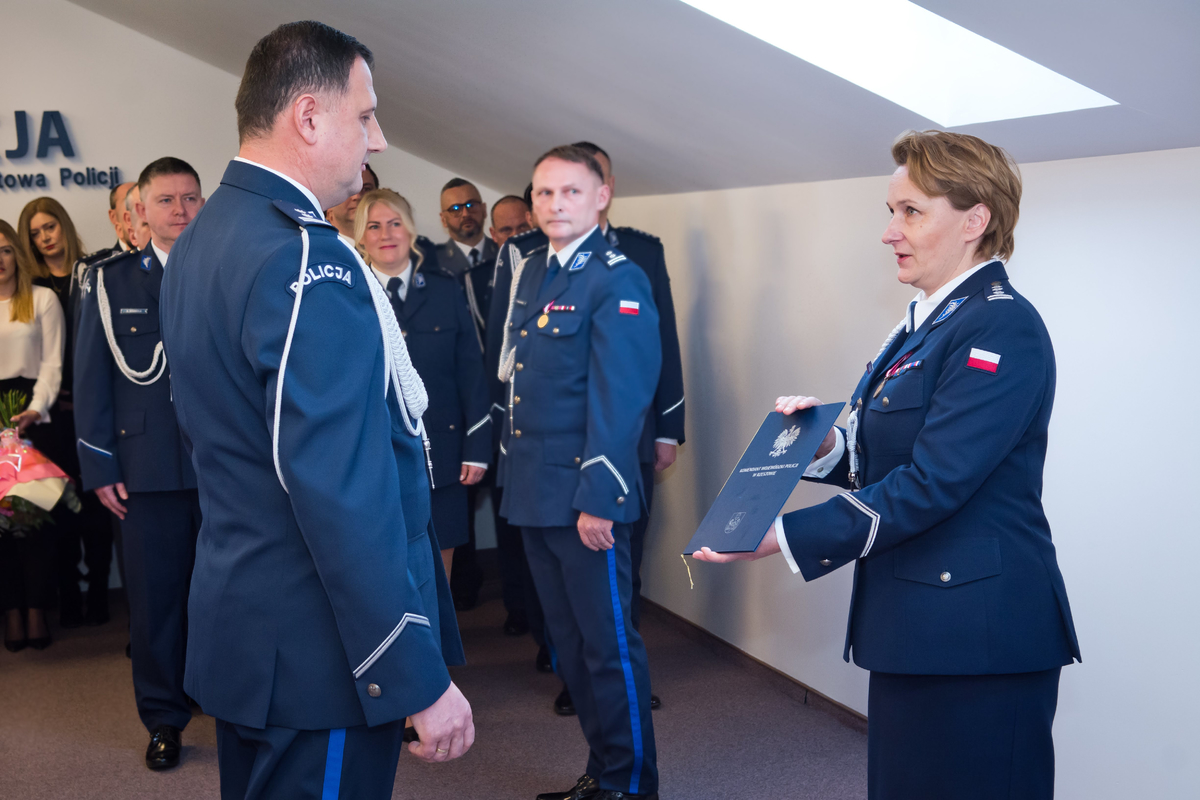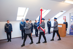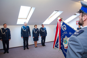 Nadkomisarz Tomasz Balawajder pożegnał się ze sztandarem Komendy Powiatowej Policji w Sanoku. Jego obowiązki przejął młodszy inspektor Artur Kowalik
