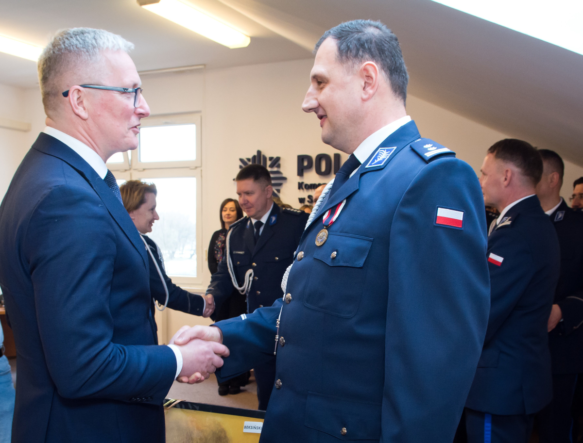 W imieniu lokalnych władz głos zabrał Starosta Sanocki Robert Pieszczoch. W swoim wystąpieniu podziękował nadkom. Balawajdrowi za owocną współpracę oraz pełną zaangażowania służbę na rzecz mieszkańców powiatu sanockiego. Pogratulowali awansu nowemu komendantowi sanockiej jednostki, życząc mu pomyślności w sprawowaniu tej niezwykle ważnej funkcji i deklarując chęć współpracy we wszelkich działaniach służących bezpieczeństwu naszego regionu.