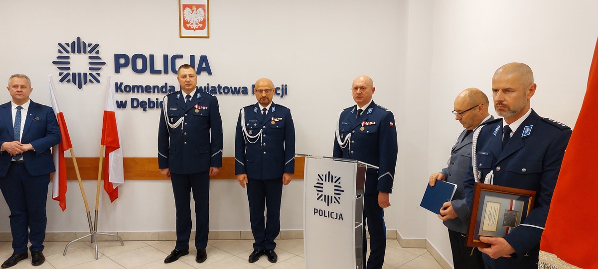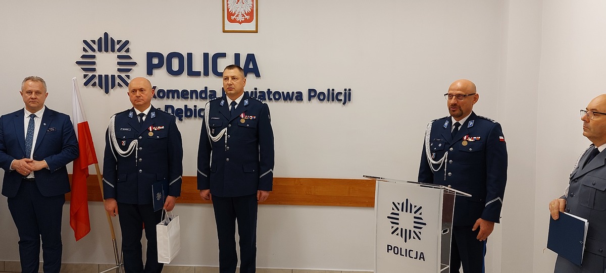W Komendzie Powiatowej Policji w Dębicy odbyła się wczoraj uroczysta zbiórka z okazji zdania i objęcia obowiązków służbowych na stanowisku Komendanta dębickiej jednostki Policji. W obecności Komendanta Wojewódzkiego Policji insp. Andrzeja Patrzałka oraz przedstawicieli lokalnych władz, instytucji współpracujących z Policją, a także funkcjonariuszy i pracowników cywilnych, insp. Jerzy Mazur pożegnał się ze sztandarem dębickiej jednostki. Ustępujący komendant podziękował za współpracę i wspólną służbę. Jego obowiązki zostały powierzone insp. Mirosławowi Wośko.