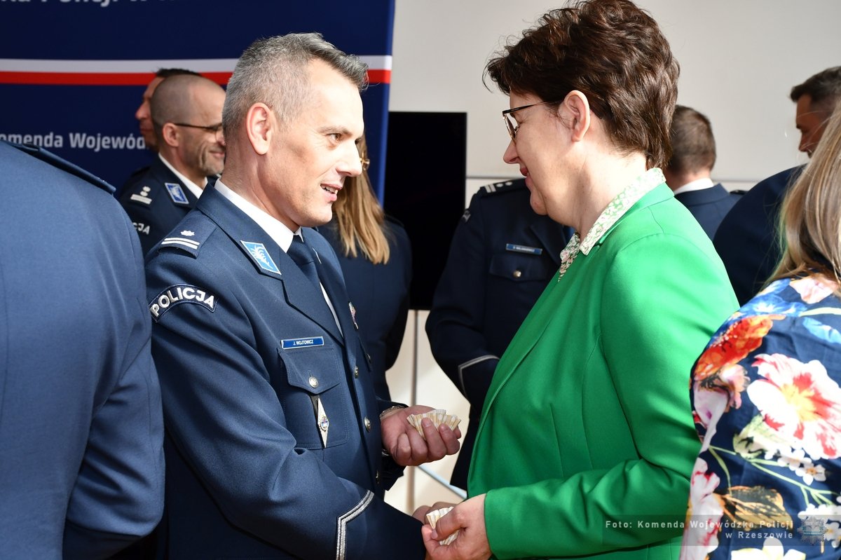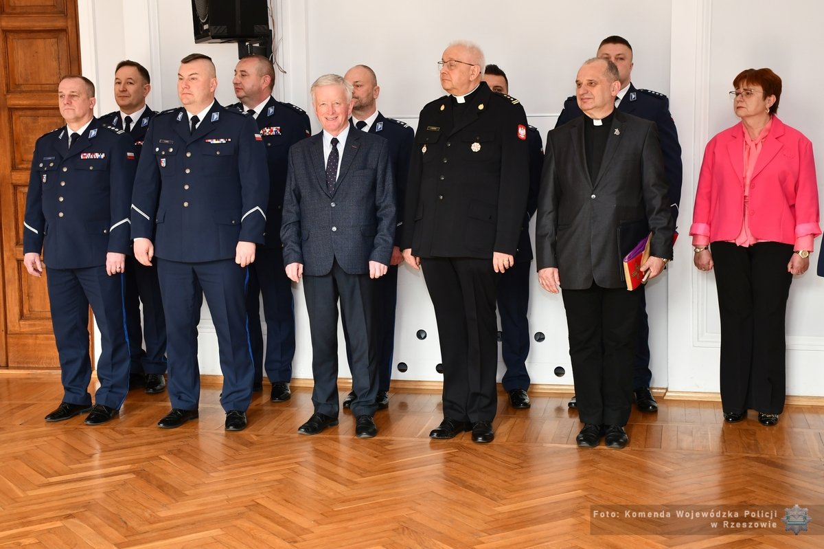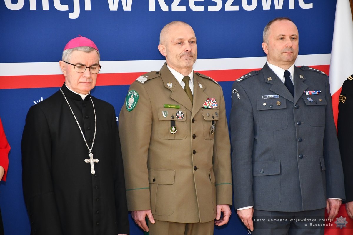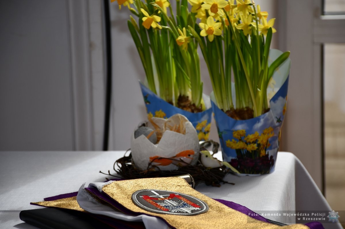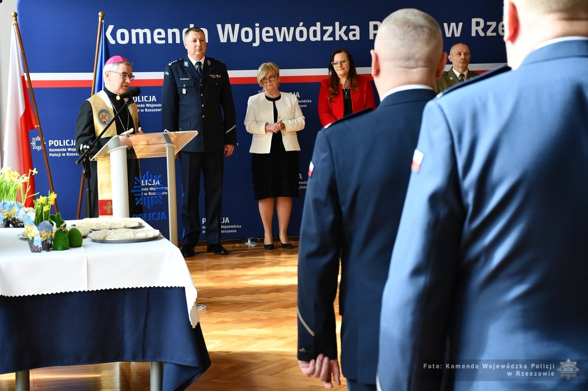 Podczas spotkania, komendant wojewódzki Policji złożył wszystkim obecnym i ich rodzinom życzenia z okazji Świąt Wielkanocnych. Wyraził również swoje uznanie wobec zaangażowania z jakim policjanci wypełniają swoje obowiązki. Życzenia spokoju, radości i życzliwości w czasie nadchodzących świąt złożyli także Wojewoda Podkarpacki Teresa Kubas-Hul, reprezentująca Marszałka Województwa Podkarpackiego Małgorzata Jarosińska-Jedynak oraz Ordynariusz Rzeszowski ks. bp Jan Wątroba.