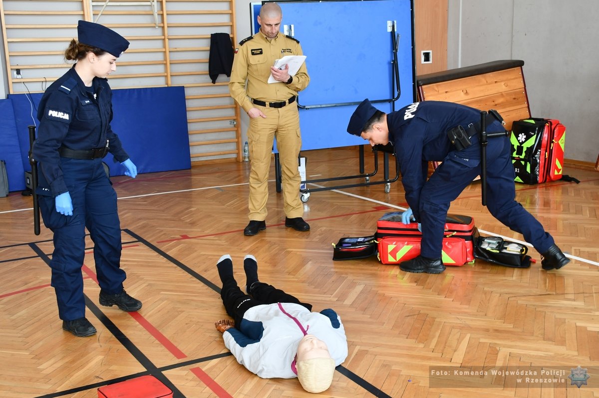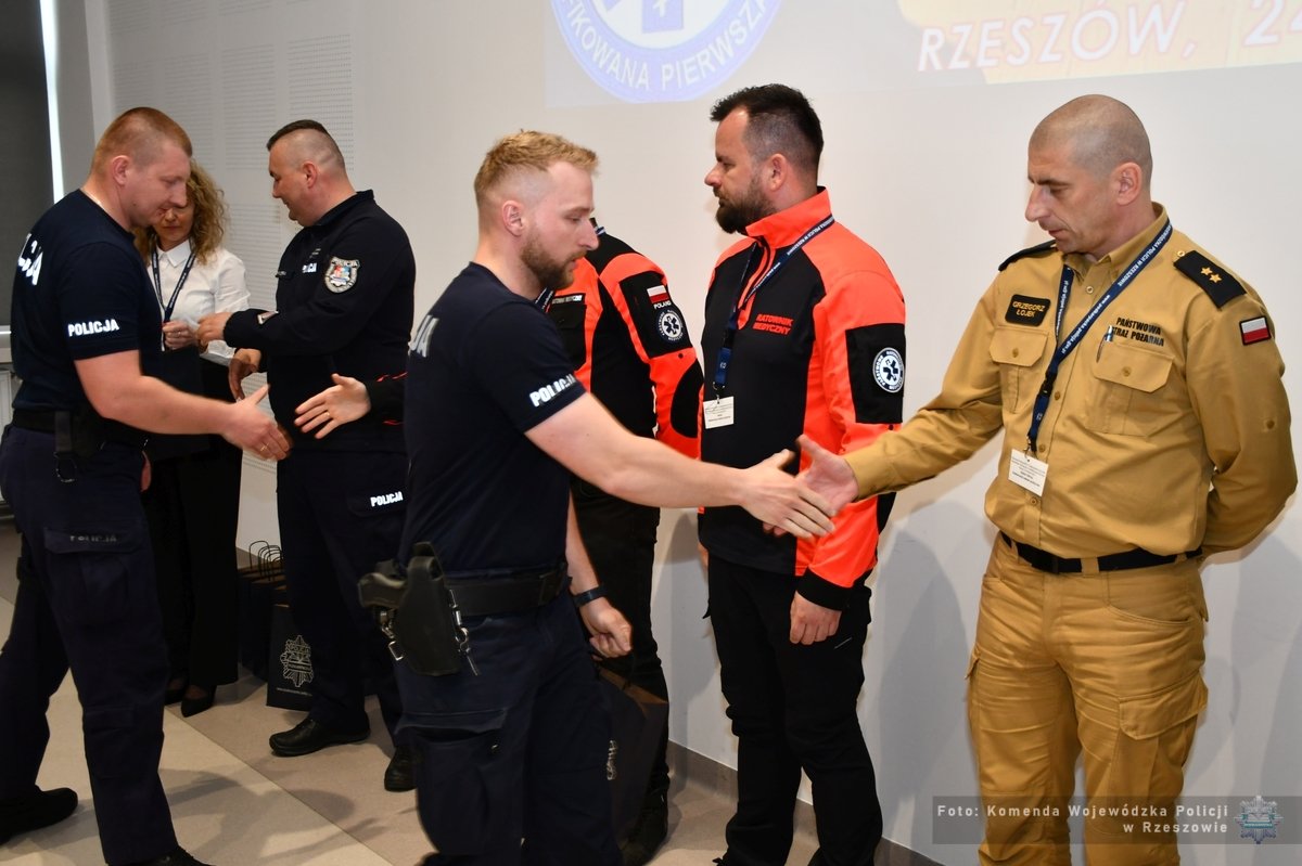 Dyplomy i nagrody najlepszym drużynom wręczył podinsp. Piotr Stępka, Zastępca Komendanta Wojewódzkiego Policji w Rzeszowie. Podziękował za organizację eliminacji wojewódzkich i złożył gratulacje wszystkim uczestnikom zawodów, podkreślając, że każdy jest wygranym, ponieważ biorąc udział w takim wydarzeniu, zyskuje cenną wiedzę i umiejętności pozwalające na skuteczne niesienie pomocy oraz ratowanie życia i zdrowia ludzi.