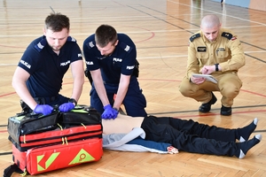 Wojewódzkie eliminacje do X Ogólnopolskich Zawodów Ratowników Policyjnych z Kwalifikowanej Pierwszej Pomocy rozpoczęły się od testu wiedzy. Każdy z zawodników miał odpowiedzieć na 30 pytań przygotowanych przez Szkołę Policji w Słupsku. Uczestnicy musieli wykazać się znajomością przepisów i procedur z zakresu kwalifikowanej pierwszej pomocy.
