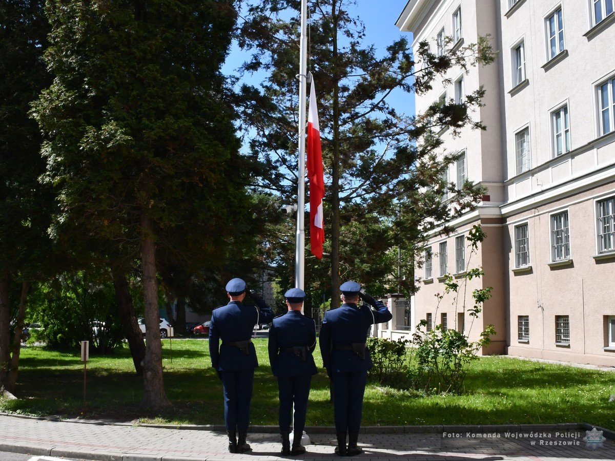 Ten uroczysty dzień uczcili także podkarpaccy policjanci. Przed południem, na maszcie przed Komendą Wojewódzką Policji w Rzeszowie zawisła biało-czerwona flaga.