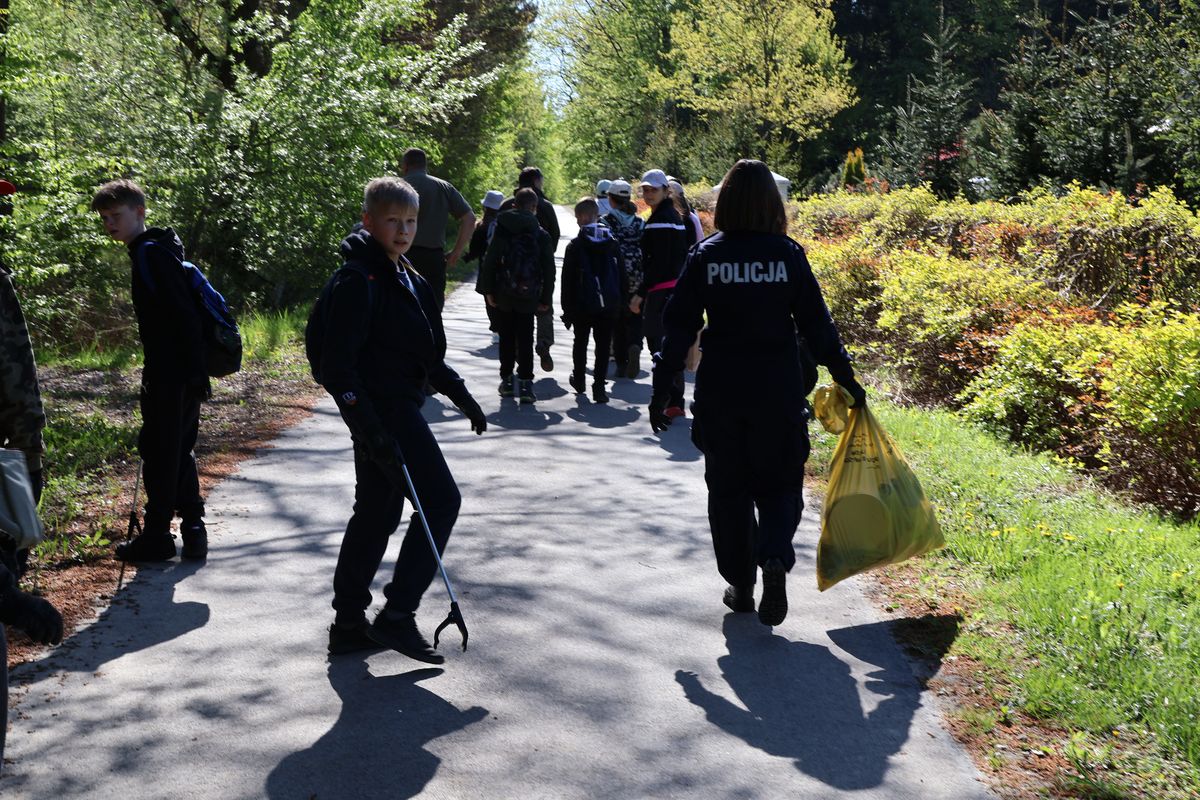 Policjanci włączyli sie w akcję "Wielopokoleniowego sprzątania lasu"