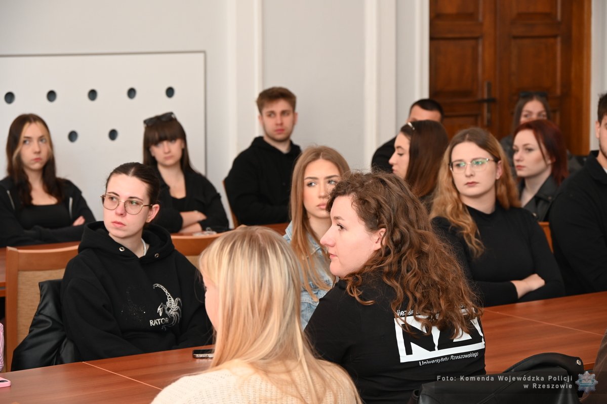 W środę, policjanci z Komendy Wojewódzkiej Policji w Rzeszowie, spotkali się ze studentami Wydziału Nauk Społecznych Uniwersytetu Rzeszowskiego kierunku Bezpieczeństwo Wewnętrzne.