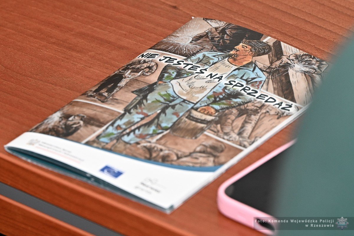 Pierwszym z prelegentów był nadkom. Paweł Grześ z Wydziału Ruchu Drogowego Komendy Wojewódzkiej Policji w Rzeszowie. Funkcjonariusz przedstawił analizę stanu bezpieczeństwa w ruchu drogowym na terenie naszego województwa. Następnie asp. szt. Jerzy Ossoliński z Wydziału Prewencji KWP w Rzeszowie poruszył tematykę związaną z przeciwdziałaniem zjawisku handlu ludźmi.