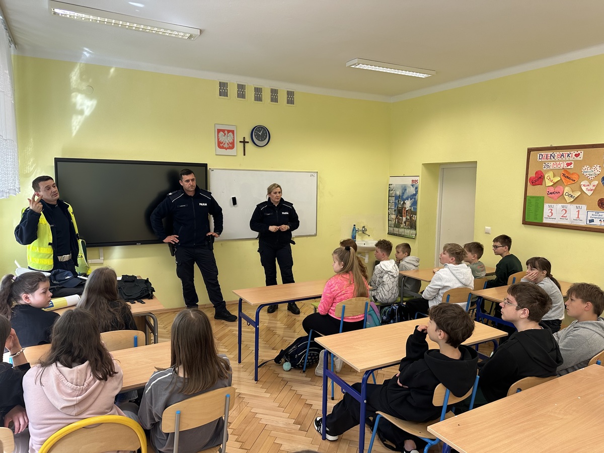 Podczas spotkania z młodzieżą z klas IV-VIII funkcjonariusze poruszali tematy związane z Cyberzagrożeniami, Hejtem. Ważnym punktem spotkania była także rozmowa o przemocy - zarówno fizycznej, jak i psychicznej. Uczniowie, dowiedzieli się gdzie szukać pomocy w trudnych sytuacjach. St. asp. Krzysztof Jabłoński, przybliżył uczniom zasady korzystania z roweru, omówił w jakie elementy powinien być wyposażony każdy rower oraz jak ważną rolę odgrywa kask ochronny. Spotkanie to było świetną okazją do omówienia różnego rodzaju zagrożeń z jakimi młodzież może się spotkać nie tylko na drodze ale również z osobą obcą.