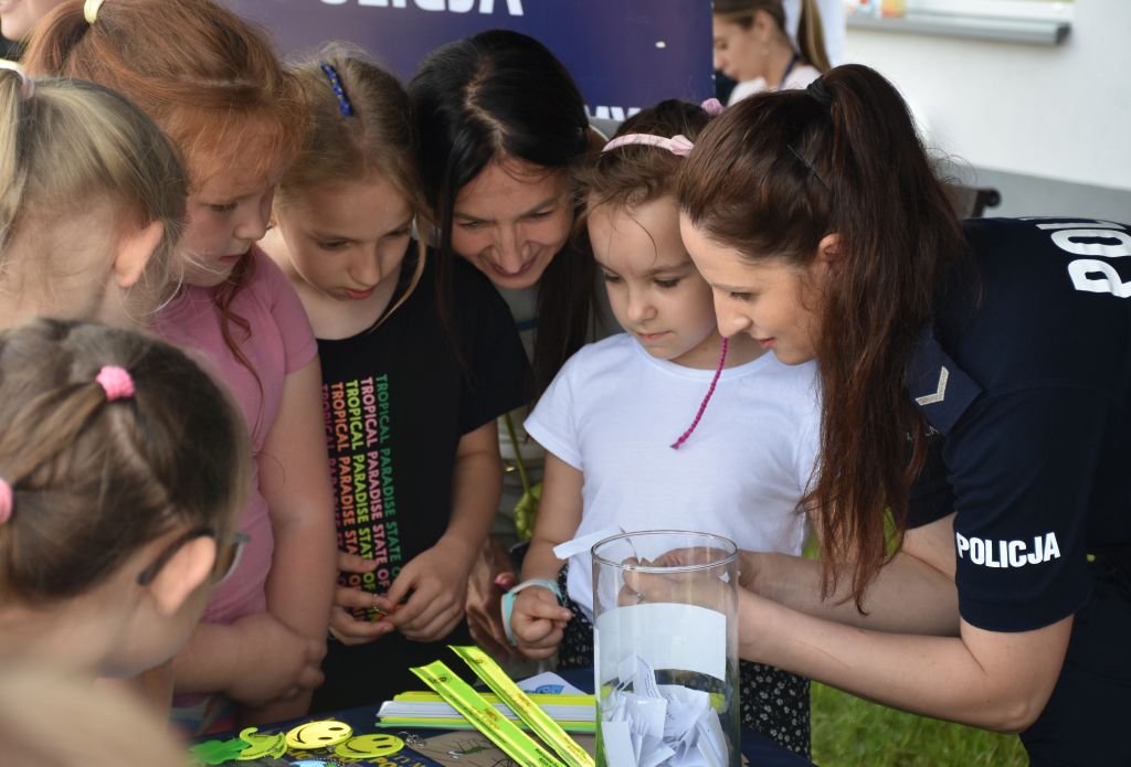 Na dzieci czekało wiele atrakcji. Najmłodsi mogli z bliska obejrzeć radiowóz, policyjne motocykle. przymierzyć elementy umundurowania. Na specjalnie przygotowanym stoisku, funkcjonariusze chętnie mówili o swojej pracy, odpowiadali na pytania dzieci oraz dzielili się cennymi wskazówkami na temat bezpieczeństwa zarówno na drodze, jak i w codziennym życiu.