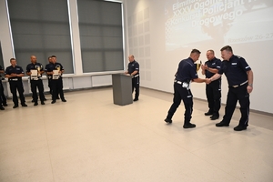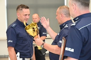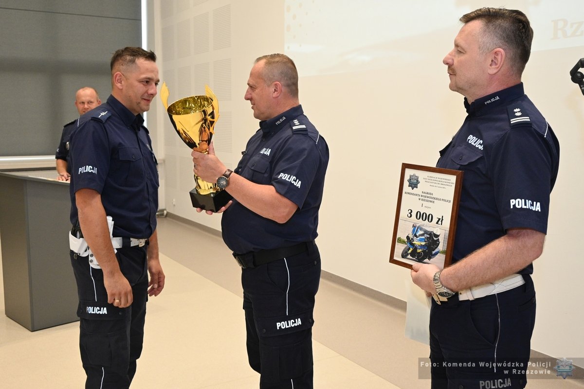 Dyplomy i nagrody najlepszym policjantom wręczył insp. Jacek Juwa, Zastępca Komendanta Wojewódzkiego Policji w Rzeszowie wraz z insp. Robertem Marszałkiem Naczelnikiem Wydziału Ruchu Drogowego komendy wojewódzkiej.