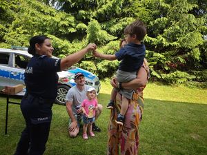 Stoisko policyjne cieszyło się ogromnym zainteresowaniem zarówno wśród najmłodszych, jak i ich rodziców. Na miejscu można było nie tylko z bliska obejrzeć policyjny radiowóz, ale także wsiąść do środka, przymierzyć czapkę służbową czy porozmawiać z funkcjonariuszami o ich codziennej pracy. Były również gadżety, naklejki czy też edukacyjne materiały, które w przyjemny sposób przekazywały najmłodszym ważne zasady bezpieczeństwa.