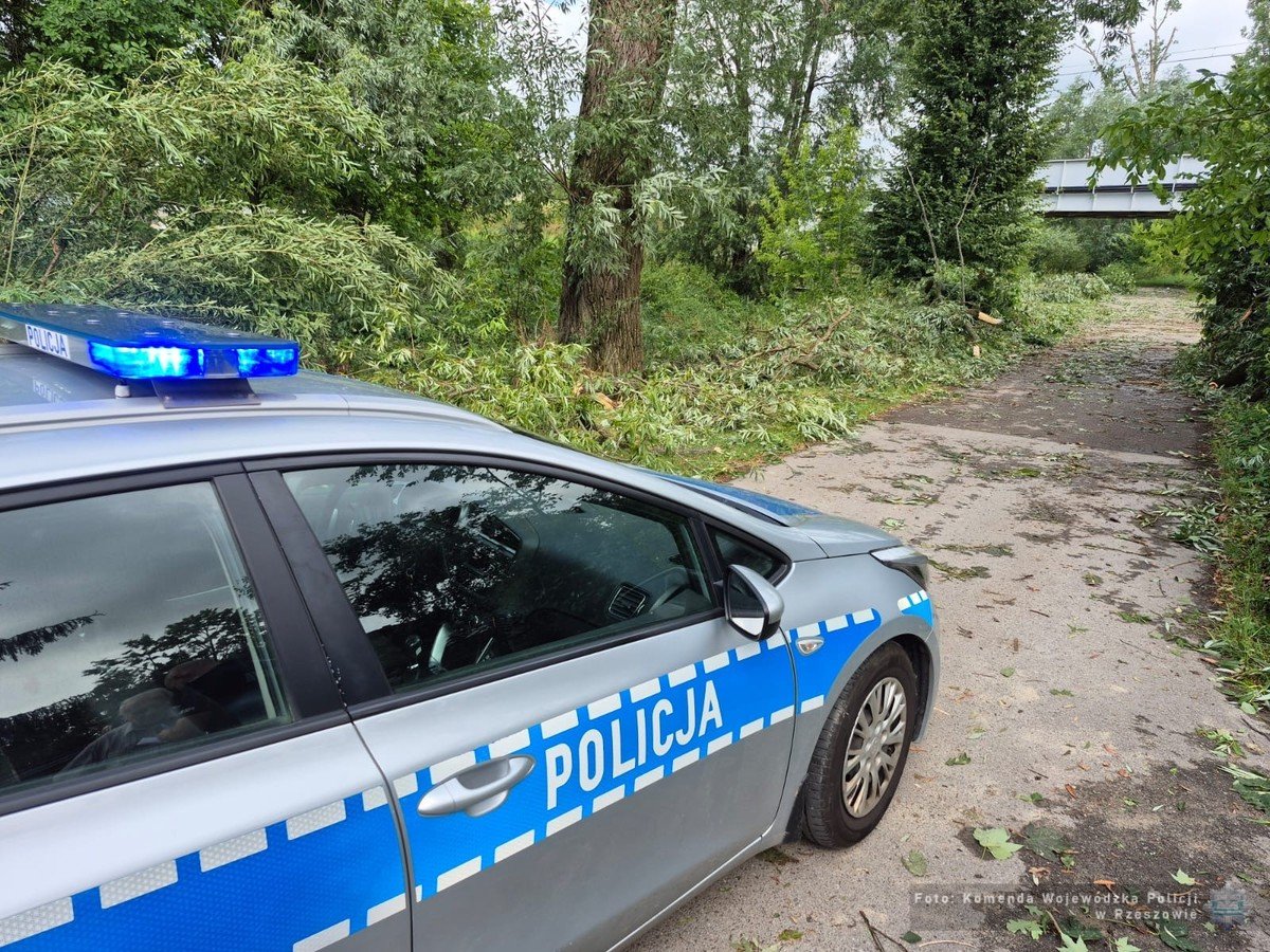Wczoraj nad regionem przeszły intensywne burze, które doprowadziły do licznych podtopień, powalonych drzew oraz lokalnych ewakuacji. Policjanci z Podkarpacia natychmiast włączyli się w działania ratownicze – patrolowali najbardziej zagrożone miejsca, wspomagając straż pożarną i inne służby w usuwaniu skutków nawałnic, a także zabezpieczaniu dróg.