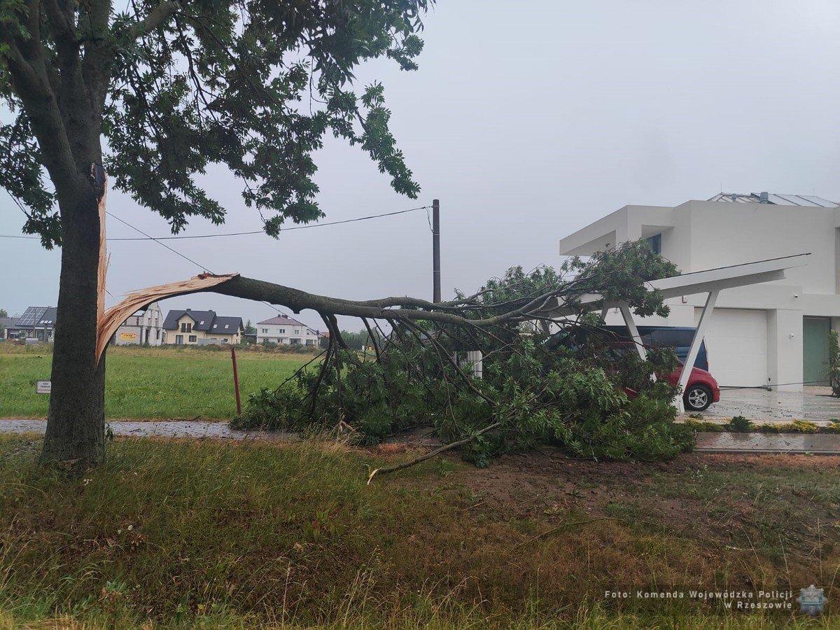 Wczorajsze gwałtowne burze nad Podkarpaciem spowodowały liczne podtopienia, powalone drzewa i lokalne ewakuacje. Policjanci natychmiast włączyli się w działania ratownicze, wspierając straż pożarną, zabezpieczając drogi oraz na polecenie Komendanta Wojewódzkiego Policji w Rzeszowie - insp. Andrzeja Patrzałka ewakuując uczestników obozów harcerskich z terenów zagrożonych.