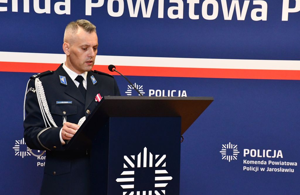 Wszystkich zgromadzonych przywitał Komendant Powiatowy Policji w Jarosławiu podinsp. Jan Wojtowicz. W swoim wystąpieniu Komendant pogratulował wszystkim awansowanym. Podziękował policjantkom, policjantom i pracownikom jarosławskiej komendy za profesjonalizm oraz rzetelne wykonywanie codziennych zadań. Szczególne słowa uznania skierował do policjantek i pracownic cywilnych, które odgrywają niezwykle istotną rolę w funkcjonowaniu jednostki. Swoje słowa skierował także do zaproszonych gości dziękując za okazywaną pomoc i udzielane wsparcie dla działań jarosławskich policjantów.