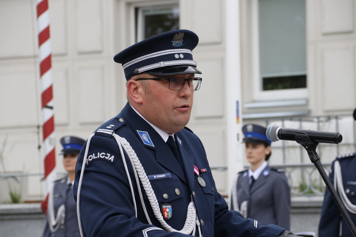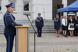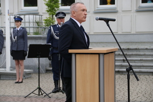 Wszystkich zgromadzonych przywitał Komendant Powiatowy Policji w Stalowej Woli mł. insp. Mariusz Stasiak. Podczas swojego przemówienia nawiązał do histroii powstania miasta Stalowa Wola i jej budowniczych, którzy mieli "stalową wolę" do tworzenia jej. Dziś tą samą "stalową wolą", my jako funkcjonariusze i pracownicy policji, w codziennej służbie zapewniamy bezpieczeństwo mieszkańcom naszego miasta i powiatu. Komendant skierował słowa podziękowania do funkcjonariuszy i pracowników komendy za zaangażowanie, codzienną służbę, poświęcenie i odwagę. Pogratulował wszystkim odznaczonym i awansowanym. Słowa wdzięczności skierował również do rodzin policjantów za ich wyrozumiałóść oraz wsparcie. Komendant podziękował przedstawicielom władz samorządowych za wspieranie naszych działań na rzecz bezpieczeństwa i porządku publicznego, przedstawicielom sądu i prokuratury za codzienną współpracę, przedstawicielom służb za wspólne działania, a emerytom i rencistom policyjnym za przekazaną wiedzę i doświadczenia.