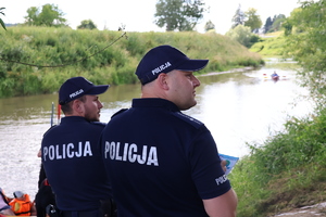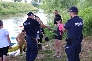 Strzyżowscy dzielnicowi promowali bezpieczeństwo w czasie wakacji podczas spływu kajakowego