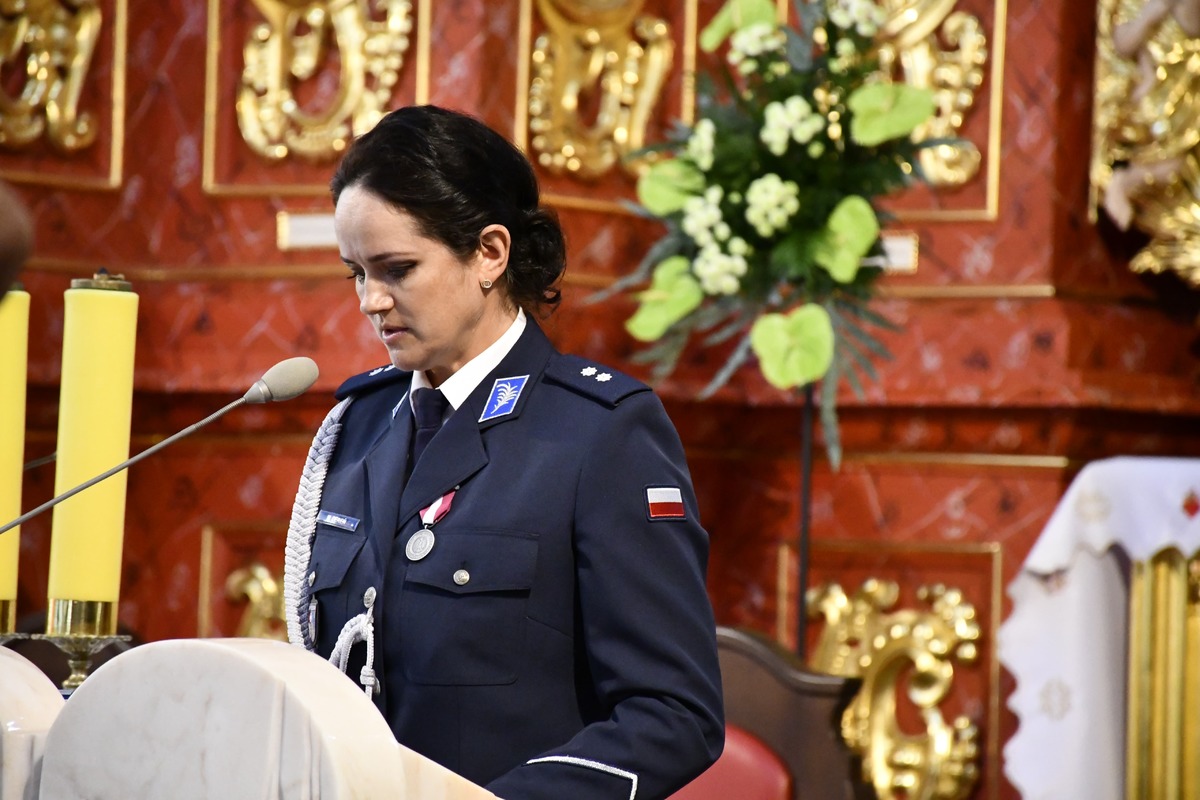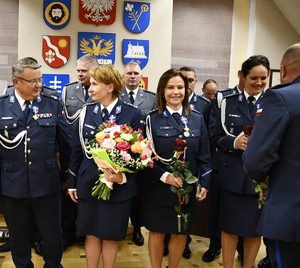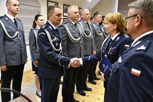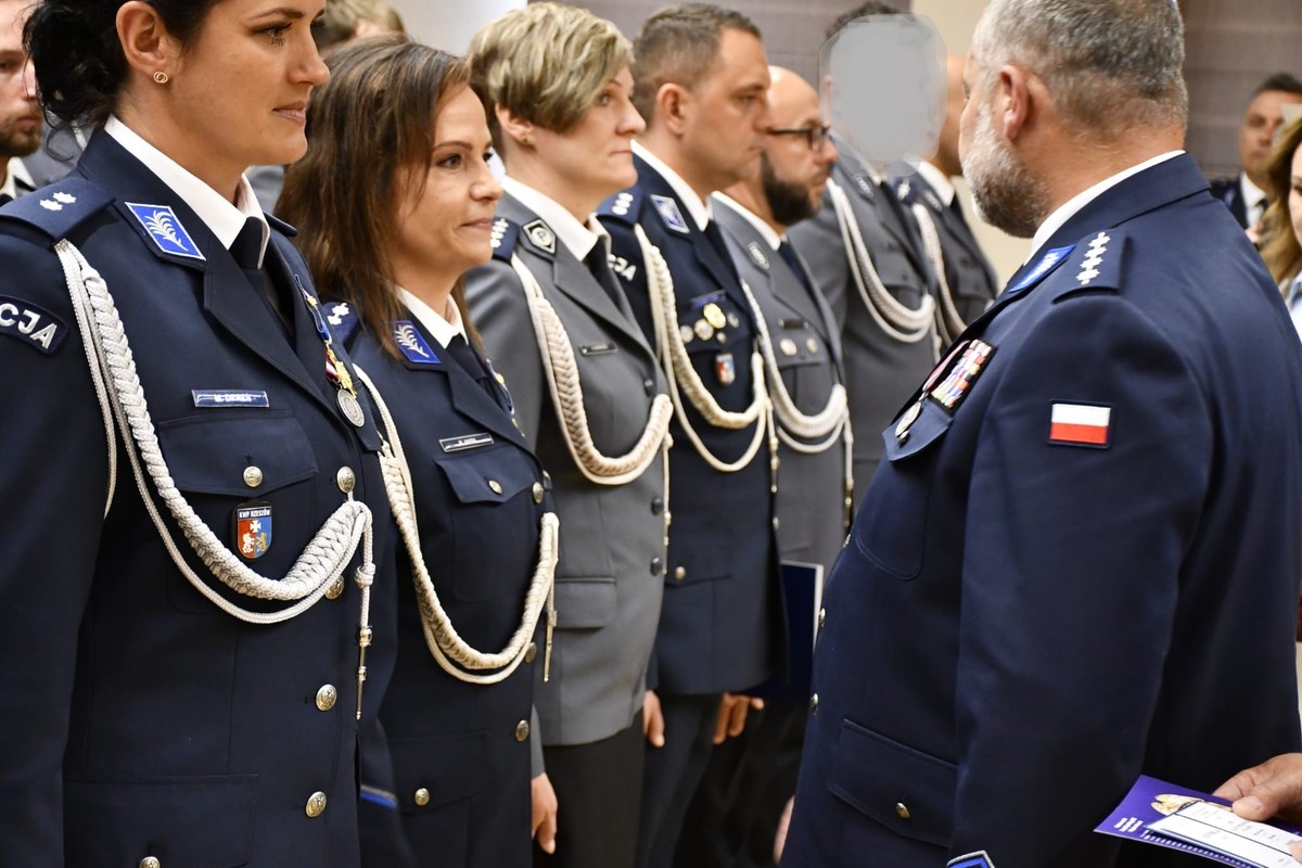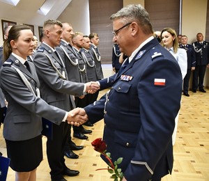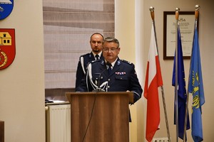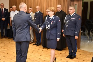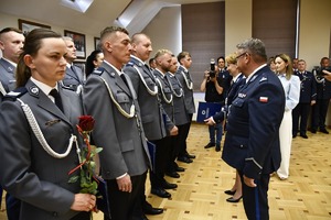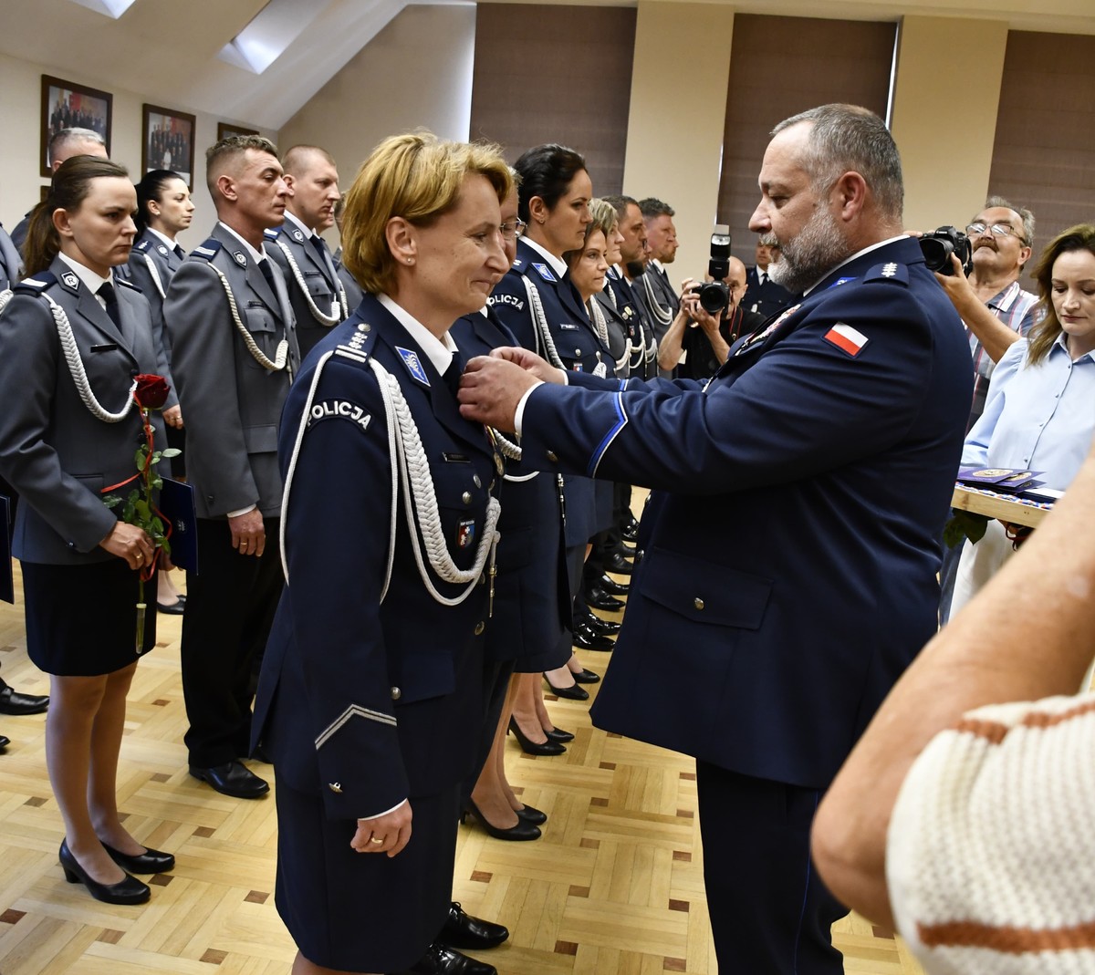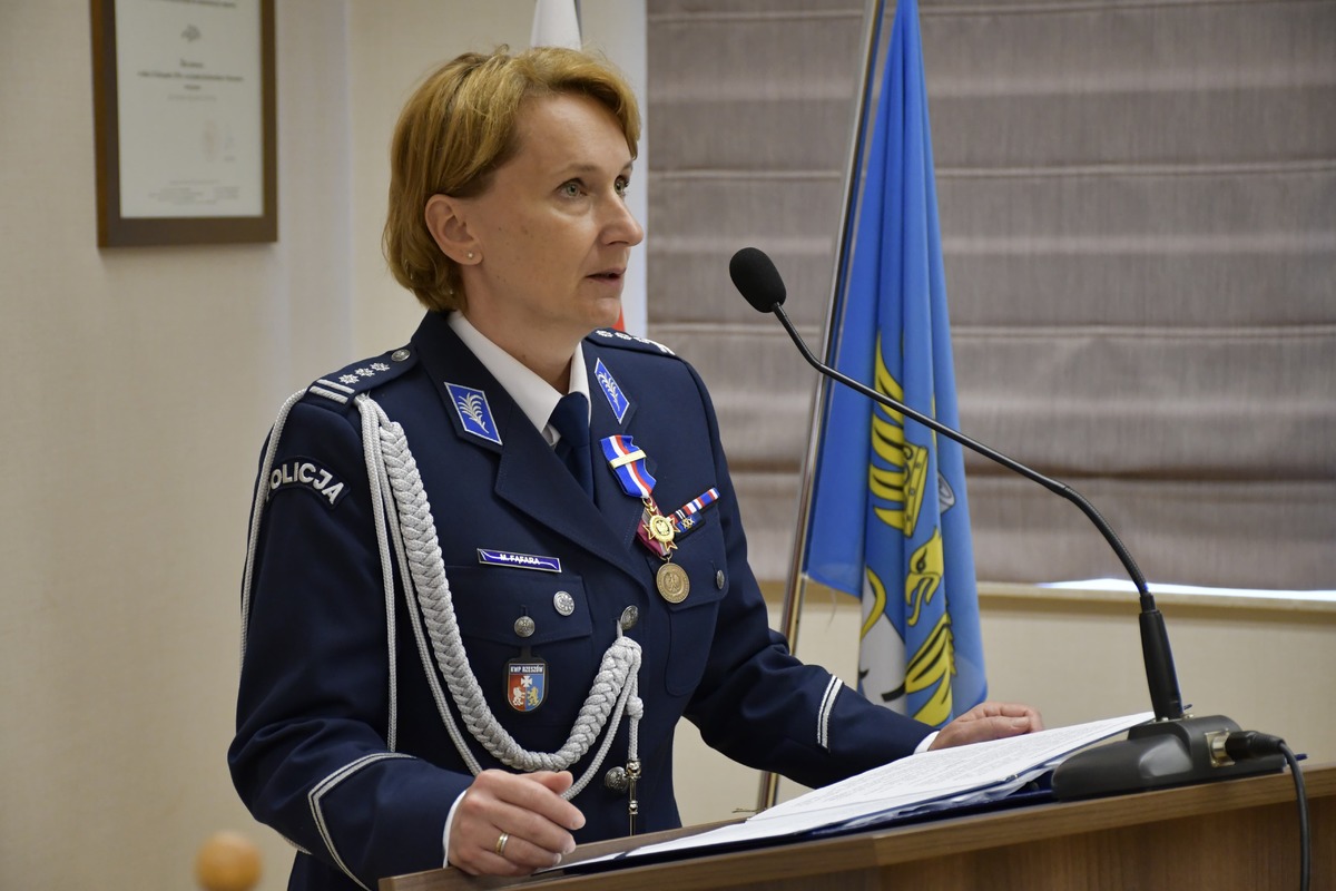 Następnie głos zabrała I Zastępca Komendanta Wojewódzkiego Policji w Rzeszowie insp. Małgorzata Fąfara zaznaczyła: „Dzisiejszy dzień to nie jest tylko uroczystość - to symbol. Symbol uznania dla poświęcenia, odwagi i wytrwałości każdego z was. W pracy policjanta nie ma miejsca na przypadek. Każdego dnia podejmujecie decyzje, które wymagają rozwagi, determinacji i ogromnej odpowiedzialności. Wasze działania pozostają często niewidoczne dla opinii publicznej, jednak realnie wpływają na bezpieczeństwo powiatu i województwa. Chciałabym dziś powiedzieć jedno proste, ale bardzo ważne słowo: dziękuję.(…) Jak powiedział generał Dwight D. Eisenhower: „Jakość żołnierza nie mierzy się w czasie pokoju, ale w obliczu wyzwania.” I Wy - funkcjonariusze polskiej Policji - każdego dnia udowadniacie, że jesteście gotowi sprostać największym wyzwaniom.(…) Zachęcam Was, byście dalej pełnili swoją służbę z dumą i poczuciem misji. By każde działanie, nawet najmniejsze, było krokiem ku lepszemu jutru".