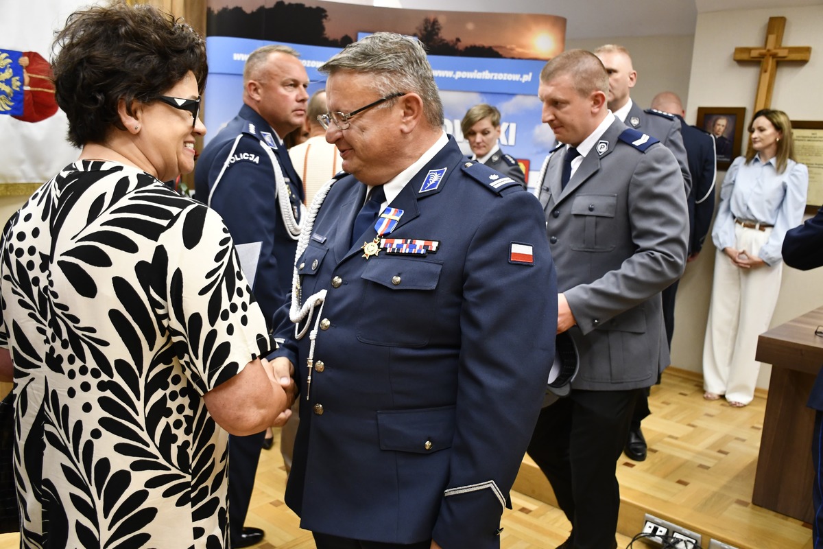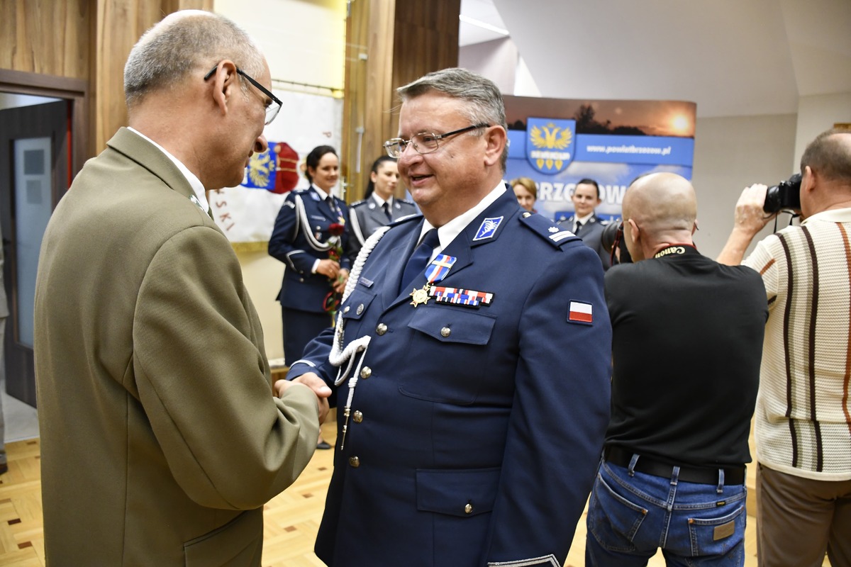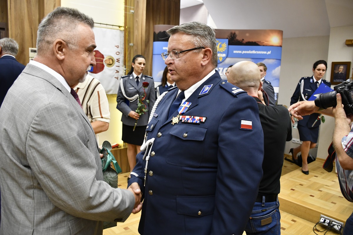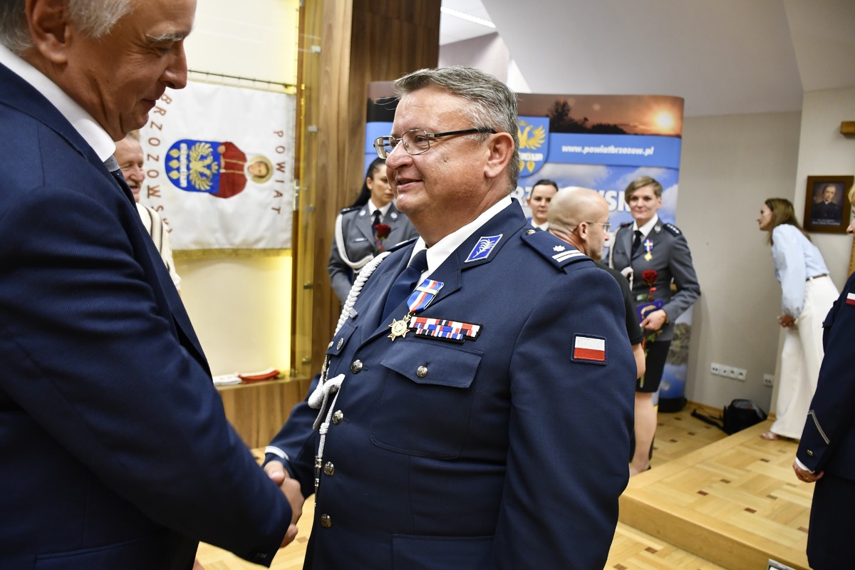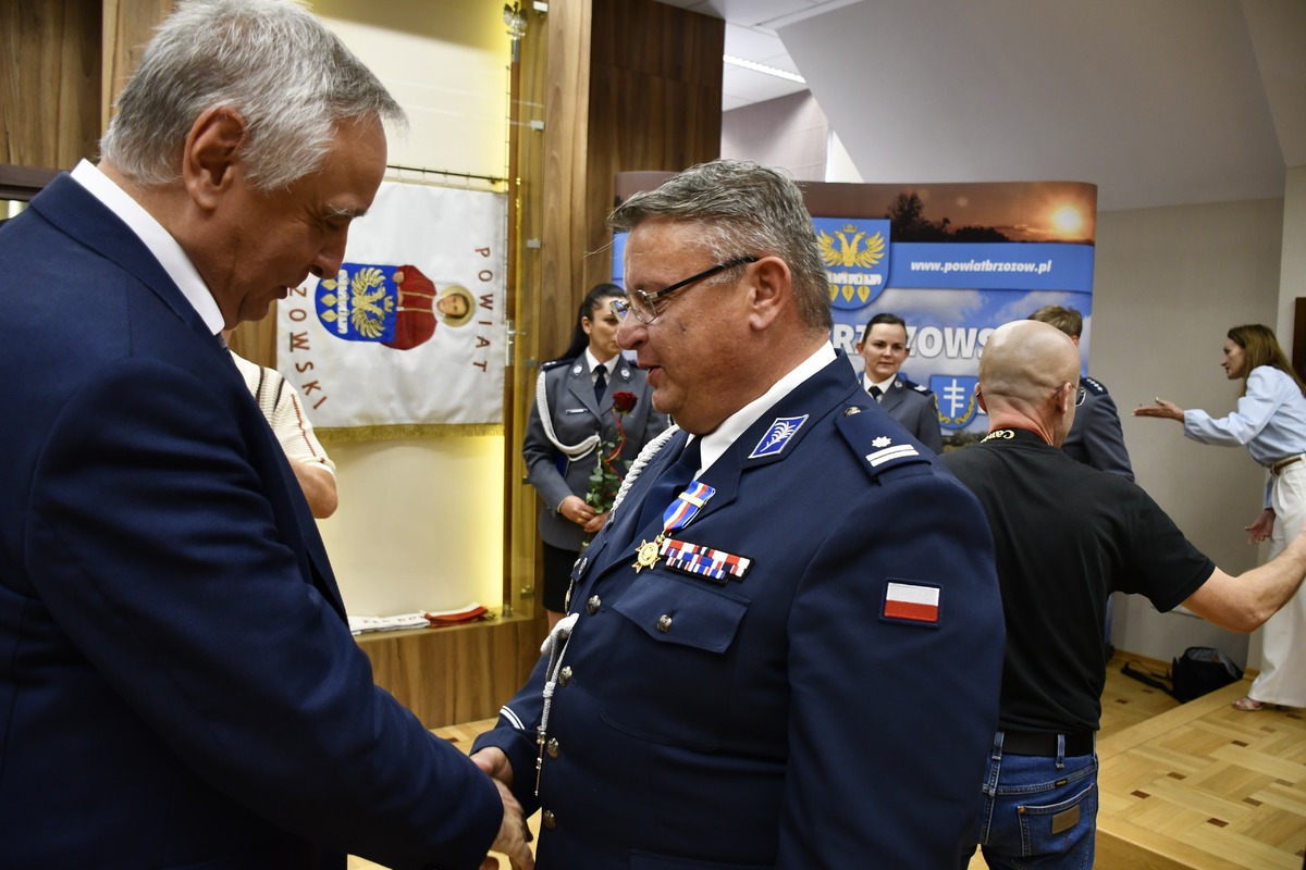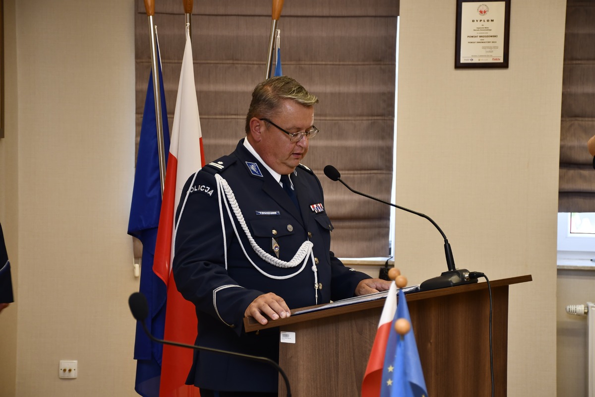 W imieniu władz samorządowych przemówił Starosta Brzozowski Jacek Adamski. Jego wystąpienie było pełne uznania i szacunku dla trudu policyjnej służby: „Obchodzone dziś Święto Policji to wyjątkowa okazja, by w sposób szczególny wyrazić szacunek, wdzięczność i głębokie uznanie dla wszystkich funkcjonariuszy oraz pracowników cywilnych tej formacji. Dla ludzi, którzy każdego dnia z ogromną odpowiedzialnością i odwagą dbają o bezpieczeństwo obywateli.(…). Wszyscy zdajemy sobie sprawę, jak trudna jest policyjna służba - wymagająca siły charakteru, bezinteresowności, ale również ogromnej empatii. To właśnie policjanci jako pierwsi docierają na miejsce wypadków czy ludzkich dramatów. Spotykają się z cierpieniem, strachem i zagubieniem. A w tych najbardziej krytycznych momentach nie tylko podejmują profesjonalne działania, ale też potrafią przekazać słowo wsparcia i zrozumienia, dając poszkodowanym poczucie, że nie są sami.(…) Tym bardziej jestem dumny, że mogę reprezentować powiat brzozowski, który od wielu lat pozostaje jednym z najbezpieczniejszych powiatów naszego województwa". Starosta pogratulował również wszystkim awansowanym i wyróżnionym funkcjonariuszom, dziękując im za sumienność i poświęcenie.