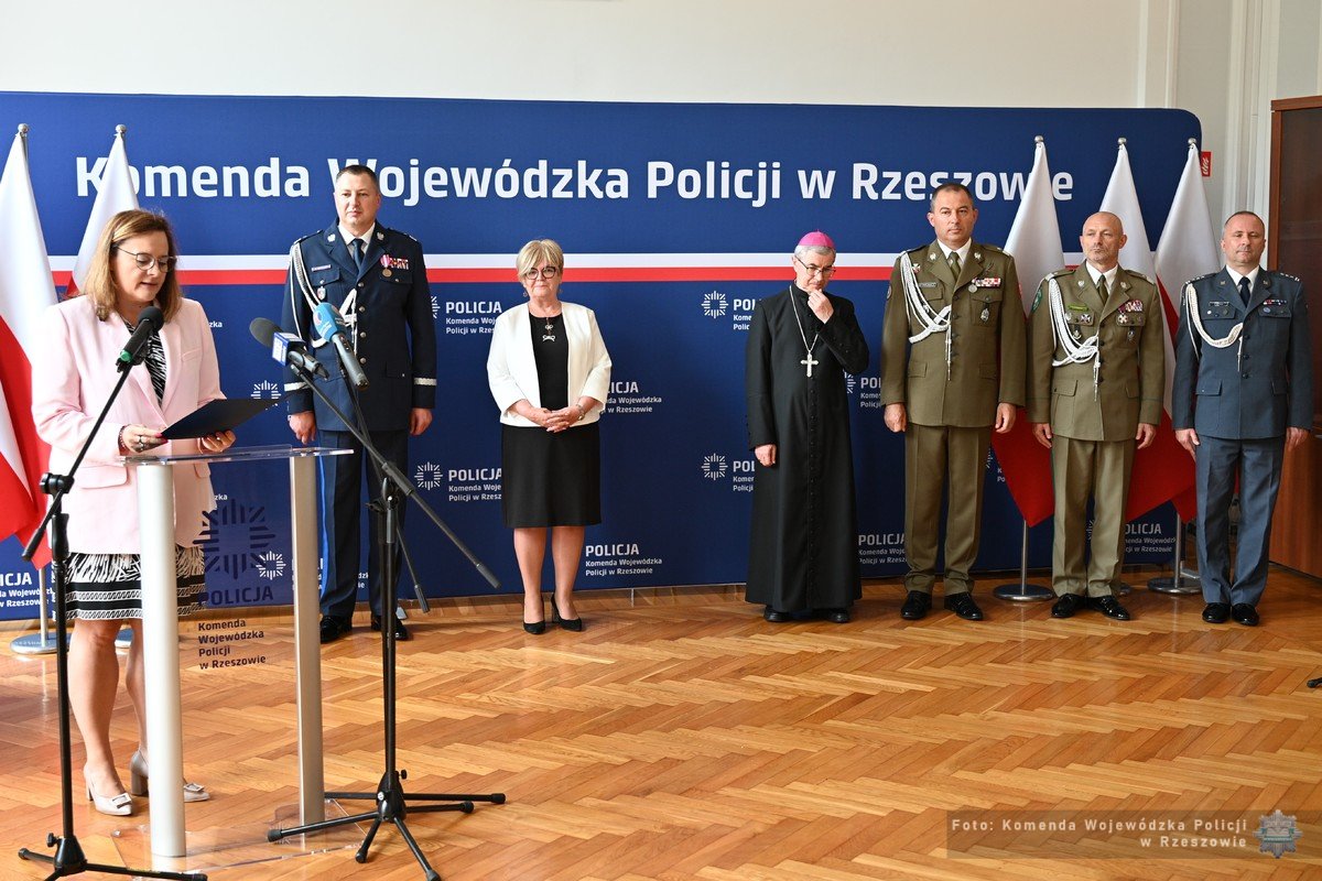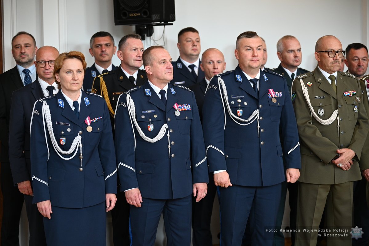 W uroczystym apelu udział wzięli Wojewoda Podkarpacki Teresa Kubas-Hul, w imieniu Marszałka Województwa Podkarpackiego Małgorzata Jarosińska-Jedynak, Biskup Rzeszowski ks. Jan Wątroba, a także przedstawiciele służb mundurowych, na co dzień współpracujących z Policją na czele z Generałami: gen. bryg. Tadeuszem Nastarowiczem oraz gen. bryg. SG Tomaszem Zybińskim, przedstawiciele Centralnego Biura Antykorupcyjnego, Zarządu w Rzeszowie Centralnego Biura Zwalczania Cyberprzestępczością, Wydziału w Rzeszowie Biura Spraw Wewnętrznych Policji, Zarządu w Rzeszowie Centralnego Biura Śledczego Policji, Wydziału do spraw Zwalczania Zorganizowanej Przestępczości Ekonomicznej Zarządu w Rzeszowie CBŚP, Biura Wojewody Podkarpackiego, Wydziału Bezpieczeństwa i Zarządzania Kryzysowego Podkarpackiego Urzędu Wojewódzkiego, przedstawiciele duchowieństwa, a także przedstawiciele policyjnych związków.