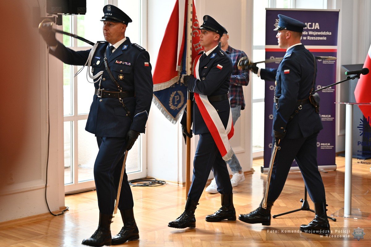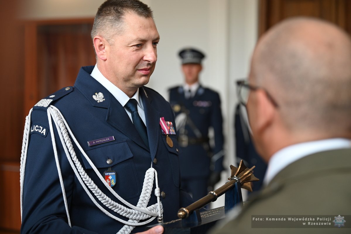 Dzisiaj w auli Komendy Wojewódzkiej Policji w Rzeszowie odbyło się uroczyste powitanie Komendanta Wojewódzkiego Policji w Rzeszowie nadinspektora Andrzeja Patrzałka w związku z nominacją na stopień nadinspektora. Uroczystość rozpoczęła się złożeniem meldunku komendantowi przez dowódcę uroczystości, po czym wprowadzono Sztandar Komendy Wojewódzkiej Policji w Rzeszowie.