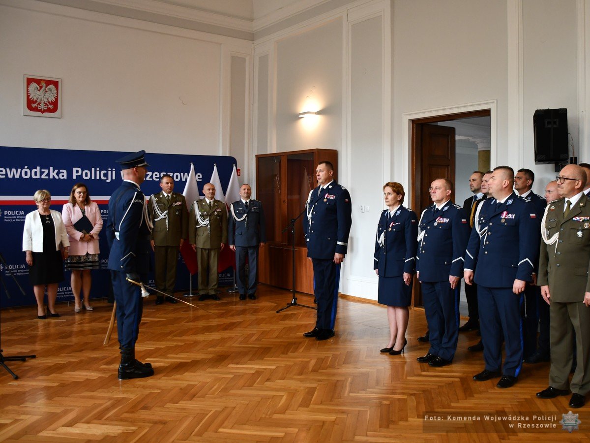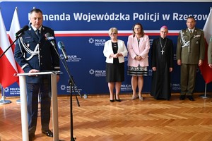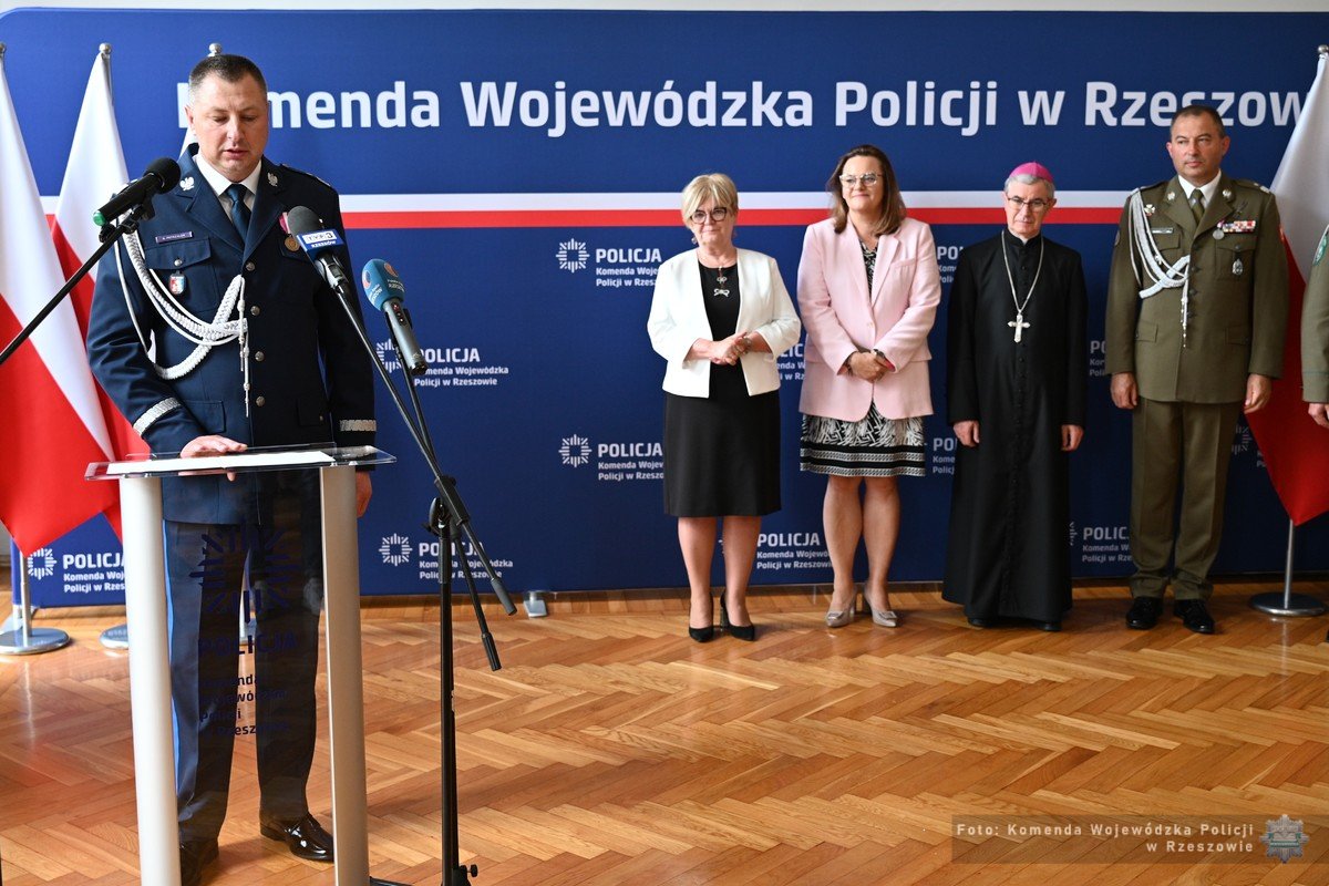 W imieniu podległych mu policjantów, Generała przywitała jego I Zastępca, inspektor Małgorzata Fąfara. W swoim wystąpieniu podkreśliła „Dziś mamy zaszczyt i ogromną przyjemność powitać w naszej jednostce nowo mianowanego generała Policji. To wyjątkowa chwila, która na długo pozostanie w naszej pamięci. Jest ona świadectwem Pańskiego doświadczenia, poświęcenia i profesjonalizmu, które zdobywał Pan przez lata służby w różnych jednostkach i formacjach Policji. Panie Generale, Pańska Droga Zawodowa to przykład ciągłego rozwoju i zaangażowania w służbę publiczną. (…) Jeszcze raz gratulujemy Panu tego wyjątkowego osiągnięcia i cieszymy się, że możemy być częścią tej ważnej chwili. Witamy Pana, Panie Generale, w naszej jednostce. Życzymy wielu owocnych lat służby na czele garnizonu podkarpackiego”.