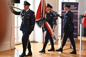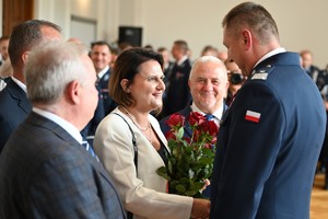 Po odprowadzeniu Sztandaru Komendy Wojewódzkiej Policji w Rzeszowie i złożeniu meldunku o zakończeniu uroczystości, przyszedł czas na kwiaty, upominki i indywidualne życzenia.