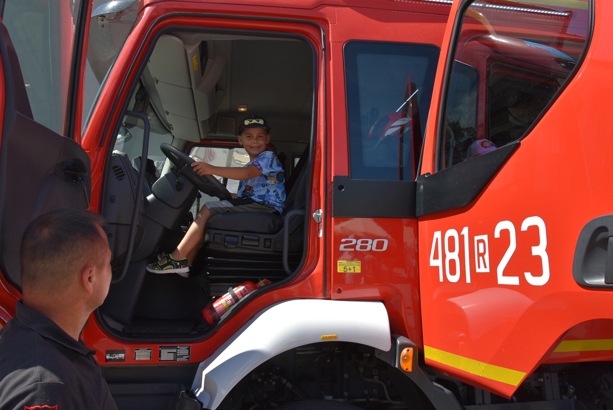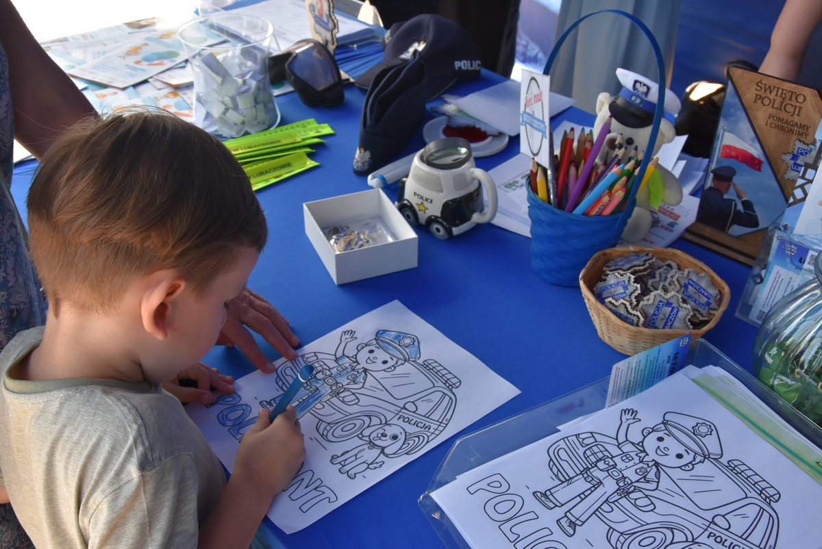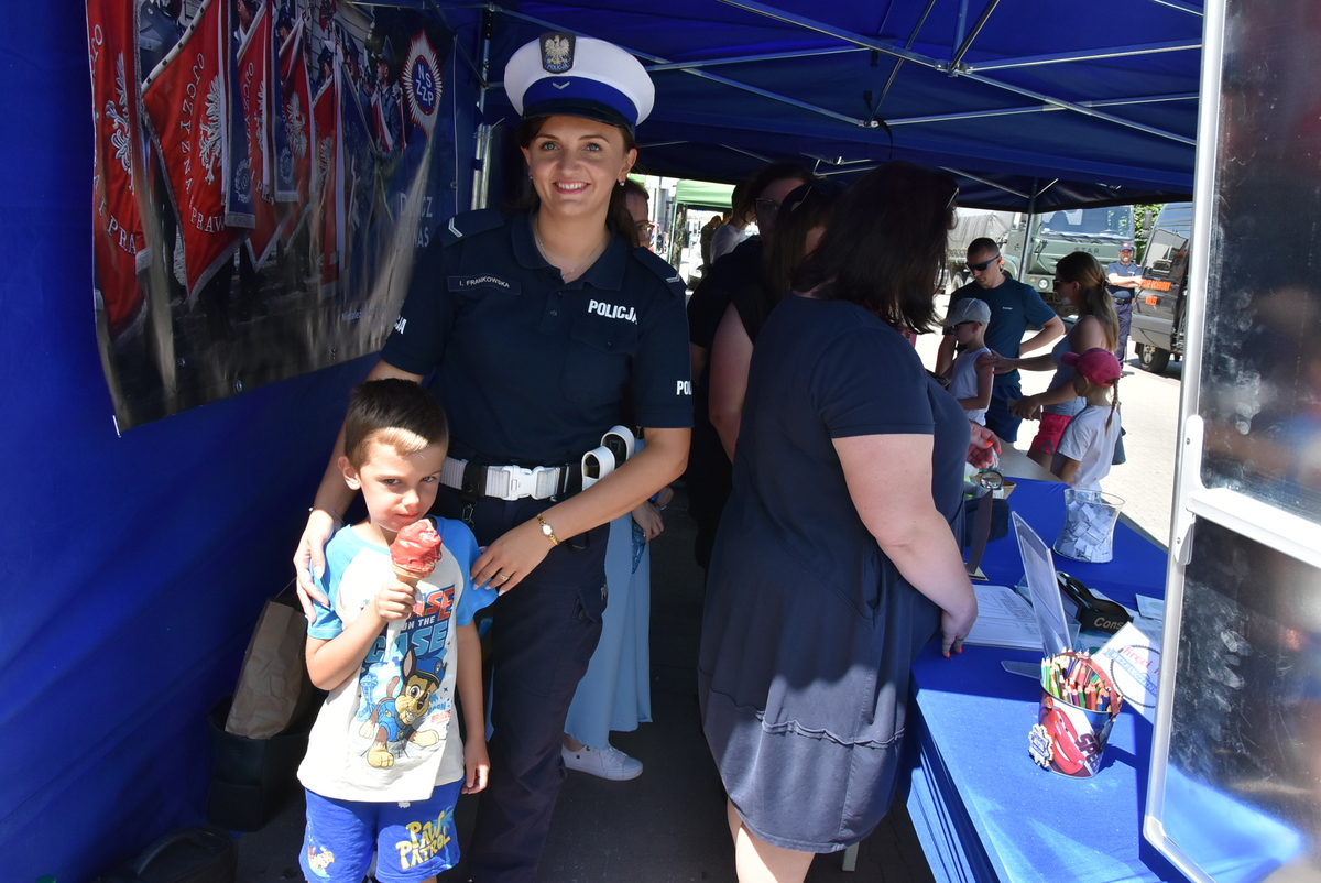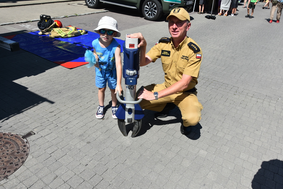 Jedną z głównych atrakcji pikniku była prezentacja sprzętu i pojazdów służbowych. Najmłodsi z ogromnym entuzjazmem korzystali z możliwości wejścia do policyjnego radiowozu, uruchomienia syren czy przymierzenia hełmu strażackiego, co wywoływało szerokie uśmiechy na ich twarzach i dawało poczucie bycia „prawdziwym” funkcjonariuszem.