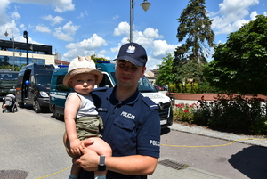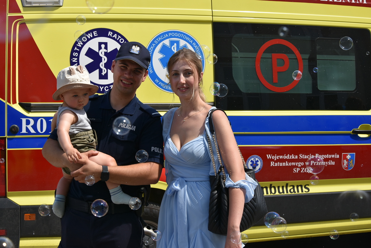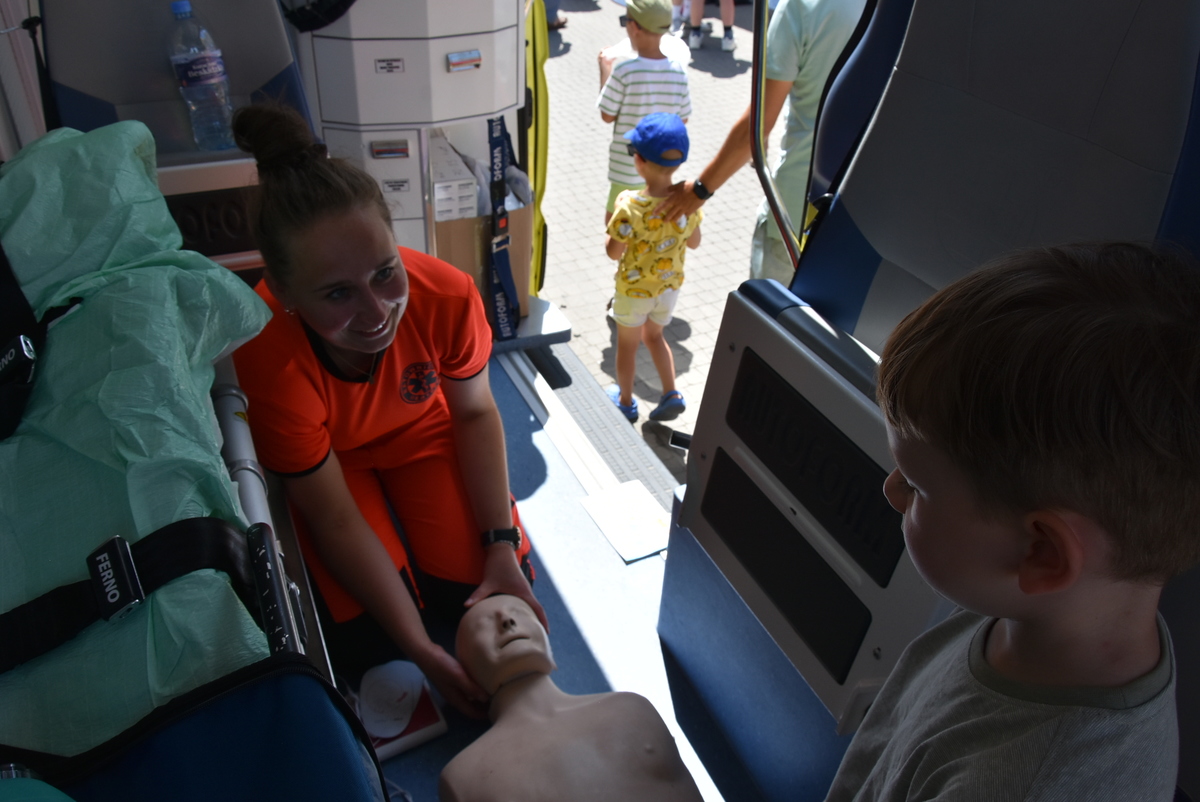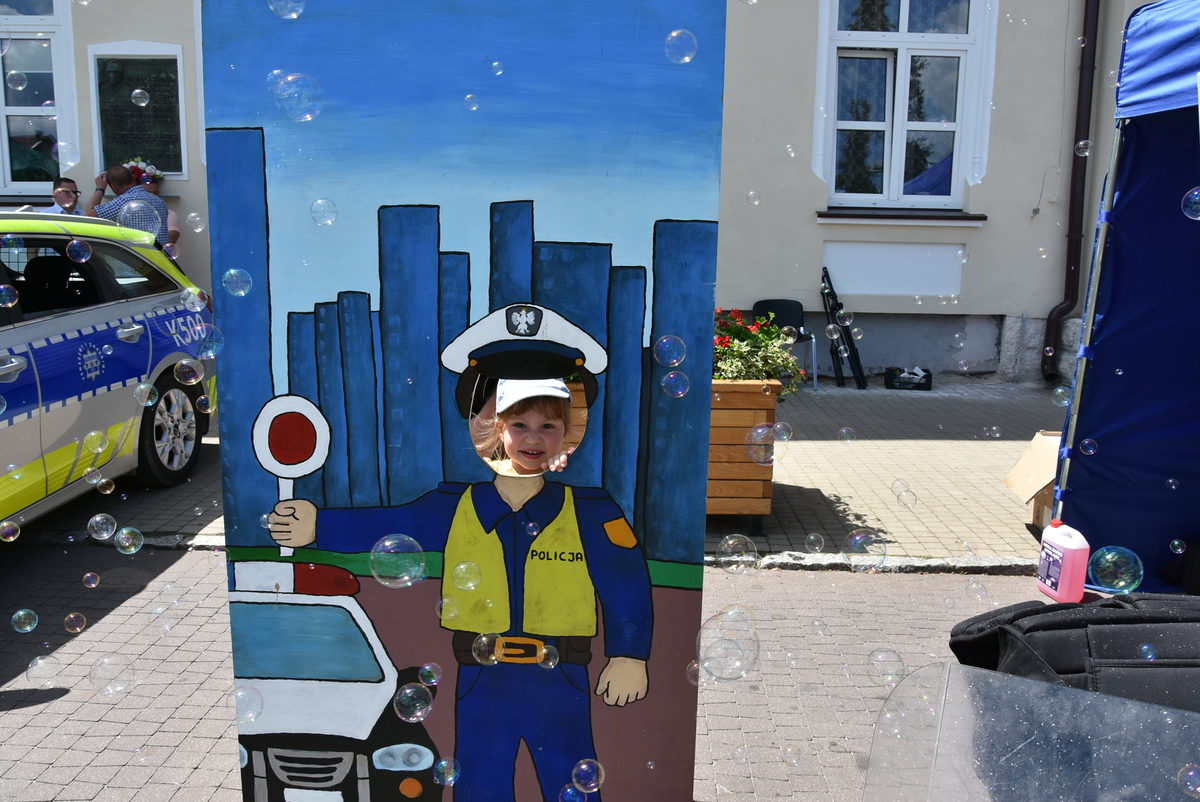 Jedną z głównych atrakcji pikniku była prezentacja sprzętu i pojazdów służbowych. Najmłodsi z ogromnym entuzjazmem korzystali z możliwości wejścia do policyjnego radiowozu, uruchomienia syren czy przymierzenia hełmu strażackiego, co wywoływało szerokie uśmiechy na ich twarzach i dawało poczucie bycia „prawdziwym” funkcjonariuszem.