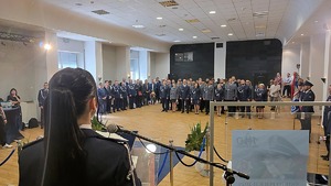Uroczysta zbiórka z okazji Obchodów Święta Policji rozpoczął o godz. 12, w Samorządowym Domu Kultury w Mielcu kom. Tomasz Mroczek złożeniem meldunku Zastępcy Komendanta Wojewódzkiego Policji w Rzeszowie insp. Jackowi Juwie.