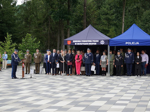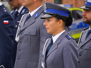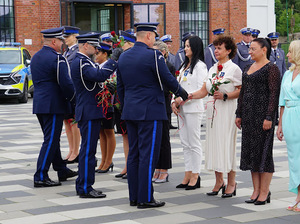 W swoim wystąpieniu Komendant Powiatowy Policji podinsp. Robert Gęborys serdecznie powitał zgromadzonych gości, w tym przedstawicieli lokalnych władz samorządowych, służb mundurowych oraz partnerów społecznych. Podziękował policjantom i pracownikom cywilnym za sumienną i profesjonalną służbę oraz zaangażowanie w codzienną pracę na rzecz społeczności lokalnej. Komendant podkreślił także znaczenie współpracy z różnymi środowiskami, która pozwala skuteczniej realizować zadania i budować wzajemne zaufanie. W swoim przemówieniu odniósł się również do jubileuszu 100-lecia służby kobiet w Policji, podkreślając ich nieoceniony wkład w rozwój formacji oraz wzmacnianie jej profesjonalnego charakteru. Komendant Powiatowy Policji, kończąc wystąpienie, podziękował wszystkim policjantkom, policjantom, pracownicom i pracownikom Policji oraz podkreślił, że swoim zaangażowaniem zasługują na najwyższe uznanie i szacunek.