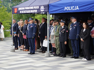 Na uroczystości głos zabrali: Starosta Bieszczadzki, który podkreślił rolę ustrzyckich funkcjonariuszy w zapewnieniu bezpieczeństwa i przekazał podziękowania za trud, jaki funkcjonariusze wkładają w codzienną służbę. Słowa gratulacji i podziękowań z okazji powiatowych obchodów Święta Policji skierował również Burmistrz Ustrzyk Dolnych Michał Wnuk.