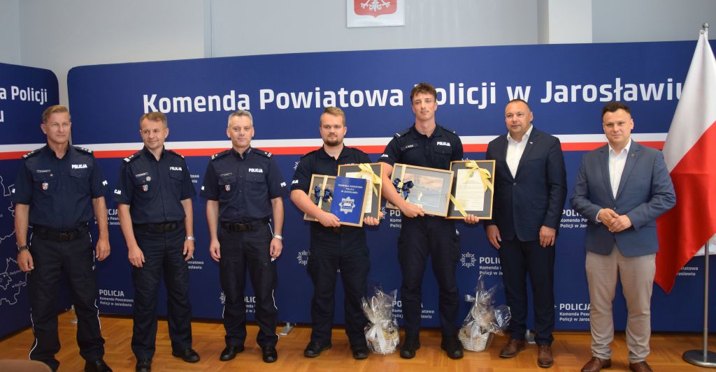 Podczas uroczystości uhonorowano także policjantów sierż. Artura Orzechowskiego i post. Huberta Łyżnia, którzy wykazali się bohaterską postawą i wzorowym profesjonalizmem podczas akcji ratunkowej 4 lipca br. Dzięki ich błyskawicznej reakcji i zdecydowanemu działaniu w sytuacji bezpośredniego zagrożenia życia 6-miesięcznego dziecka, możliwe było szybkie przetransportowanie niemowlęcia do szpitala.