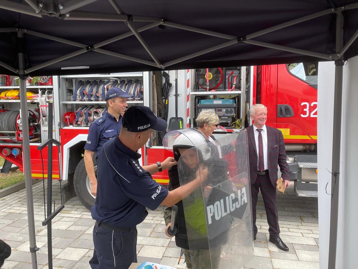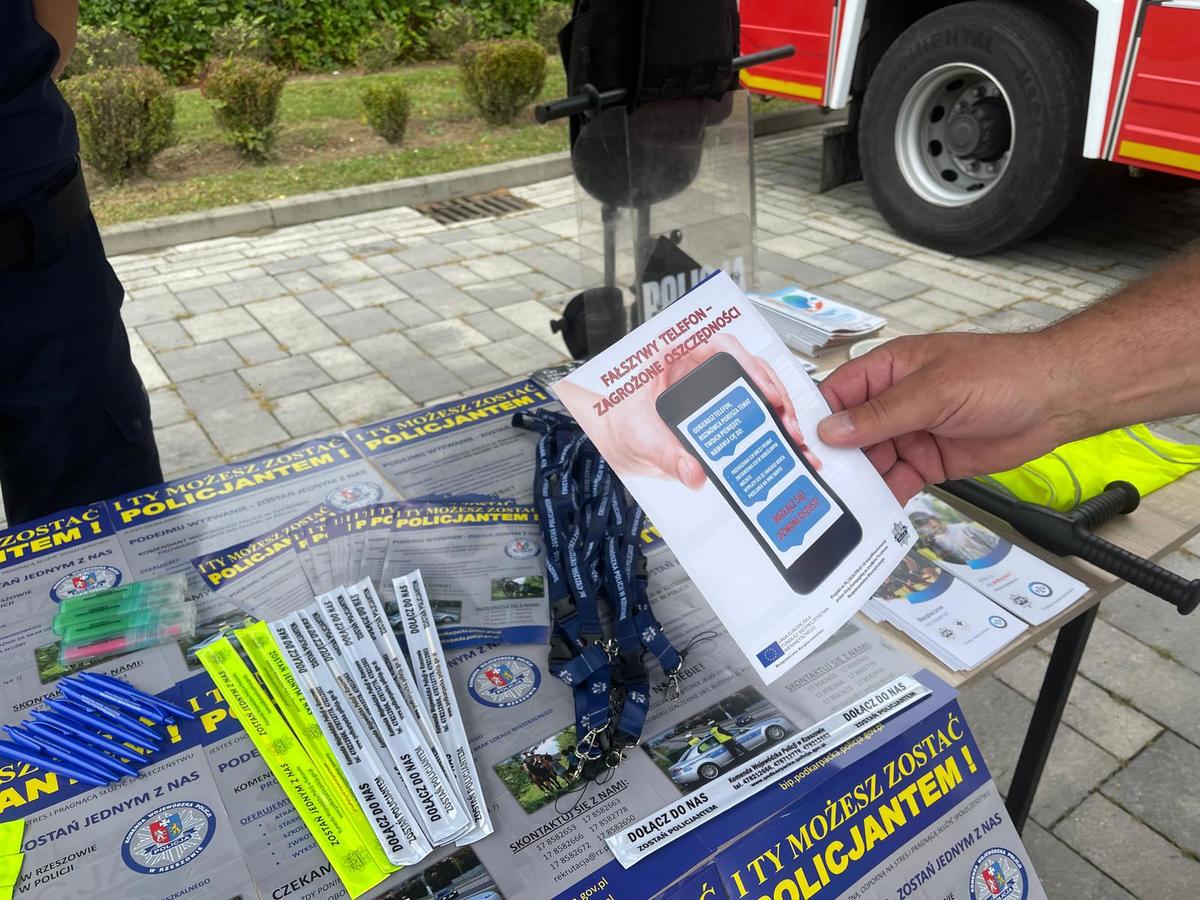 Przedstawiciele służb mundurowych na specjalnie przygotowanych stanowiskach prezentowali swoje wyposażenie. Funkcjonariusze Wydziału Prewencji oraz Sekcji Doboru Wydziału Kadr i Szkolenia Komendy Wojewódzkiej Policji w Rzeszowie wspólnie z policjantami Wydziału Prewencji Komendy Miejskiej Policji w Rzeszowie przekazywali materiały i gadżety profilaktyczne dotyczące bezpiecznych zachowań. Mówili także na temat działania Krajowej Mapy Zagrożeń Bezpieczeństwa i zachęcali mieszkańców do korzystania z tej aplikacji.
