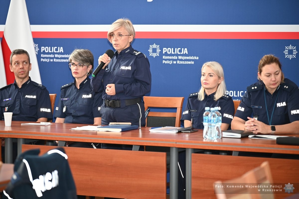 W dalszej głos zabrali funkcjonariusze Wydziału Prewencji Komendy Wojewódzkiej Policji w Rzeszowie koordynujący zagadnienia z zakresu profilaktyki społecznej oraz zadania komórek ds. nieletnich i patologii na terenie województwa podkarpackiego. Nadkom. Monika Hędrzak omówiła postępowanie w sprawach nieletnich w kontekście zadań realizowanych przez Policję oraz działania podejmowane na rzecz małoletnich. Z kolei podkom. Jerzy Ossoliński przedstawił działania profilaktyczne podejmowane na rzecz przeciwdziałania cyberzagrożeniom w kontekście realizacji programu Cyberbezpieczni.