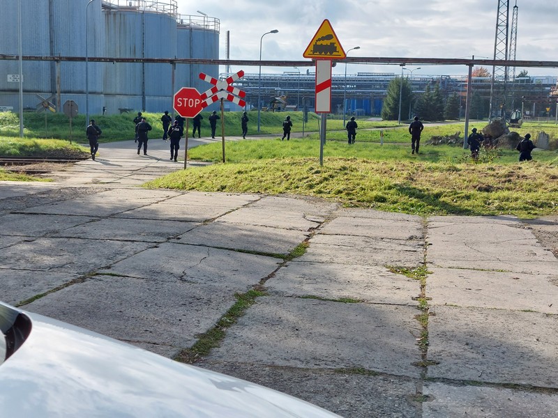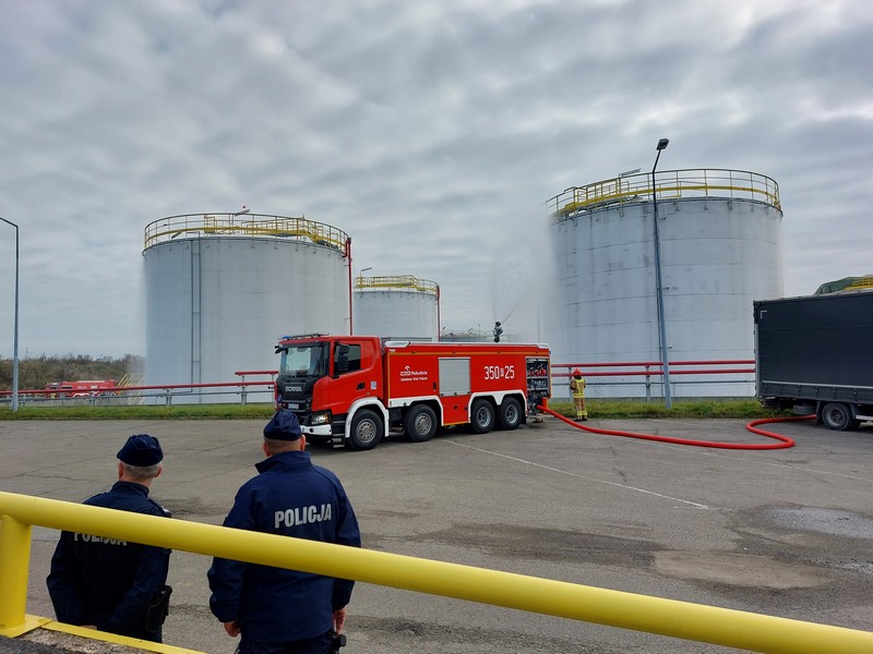 Zagrożenie rozprzestrzenienia się pożaru na pozostałe elementy infrastruktury rafineryjnej wymagało skierowania w rejon zagrożenia znacznych sił i specjalistycznego sprzętu. Zadania dla policjantów dotyczyły zlokalizowania, obezwładnienia oraz zatrzymania ukrywającego się na terenie zakładu sabotażysty. Policyjne działania nadzorował Komendant Miejski Policji w Krośnie podinsp. Daniel Lendzio.