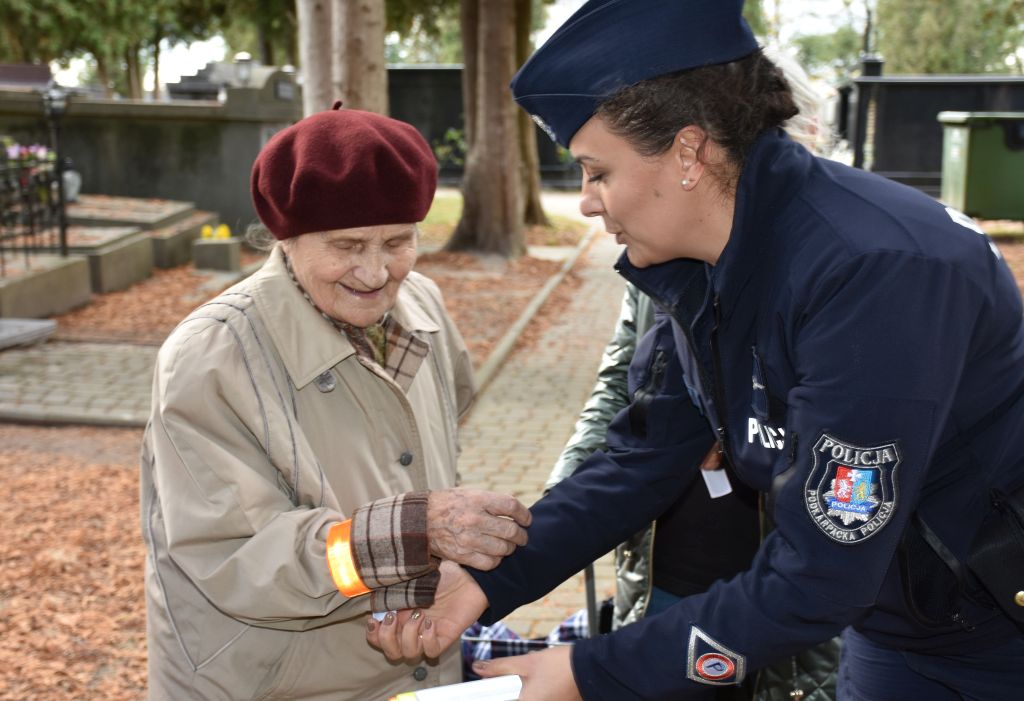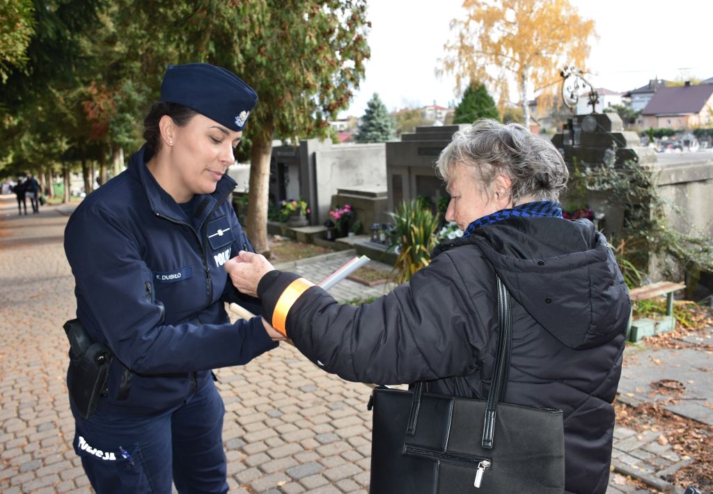 Kilka dni przed uroczystościami Dnia Wszystkich Świętych, jarosławska dzielnicowa przeprowadziła działania profilaktyczne na terenie cmentarza komunalnego. W ramach akcji, policjantka rozdawała odwiedzającym elementy odblaskowe, przypominając o zasadach bezpiecznego poruszania się po zmroku.