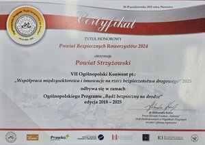 Tytuł "Powiat Bezpiecznych Rowerzystów 2024" jest nie tylko prestiżowym wyróżnieniem, ale także potwierdzeniem, że współpraca Policji z władzami Powiatu Strzyżowskiego stanowią przykład działań mających na celu budowanie środowiska przyjaznego i bezpiecznego dla wszystkich mieszkańców i uczestników ruchu drogowego.